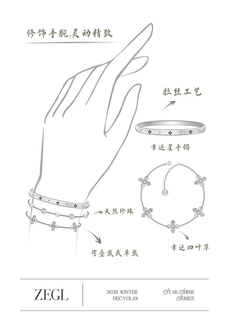 ZEGL设计师星耀系列手链女轻奢小众精致银色拉丝手镯手饰