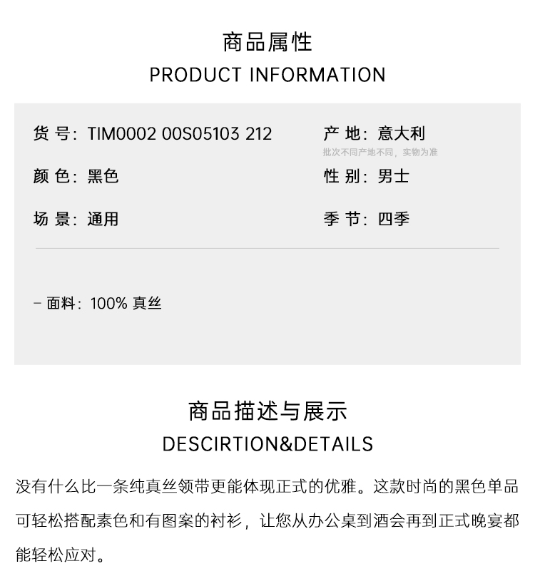 DSQUARED2 男士D2编织丝绸领带经典领带 黑色 TIM0002 00S05103 2124