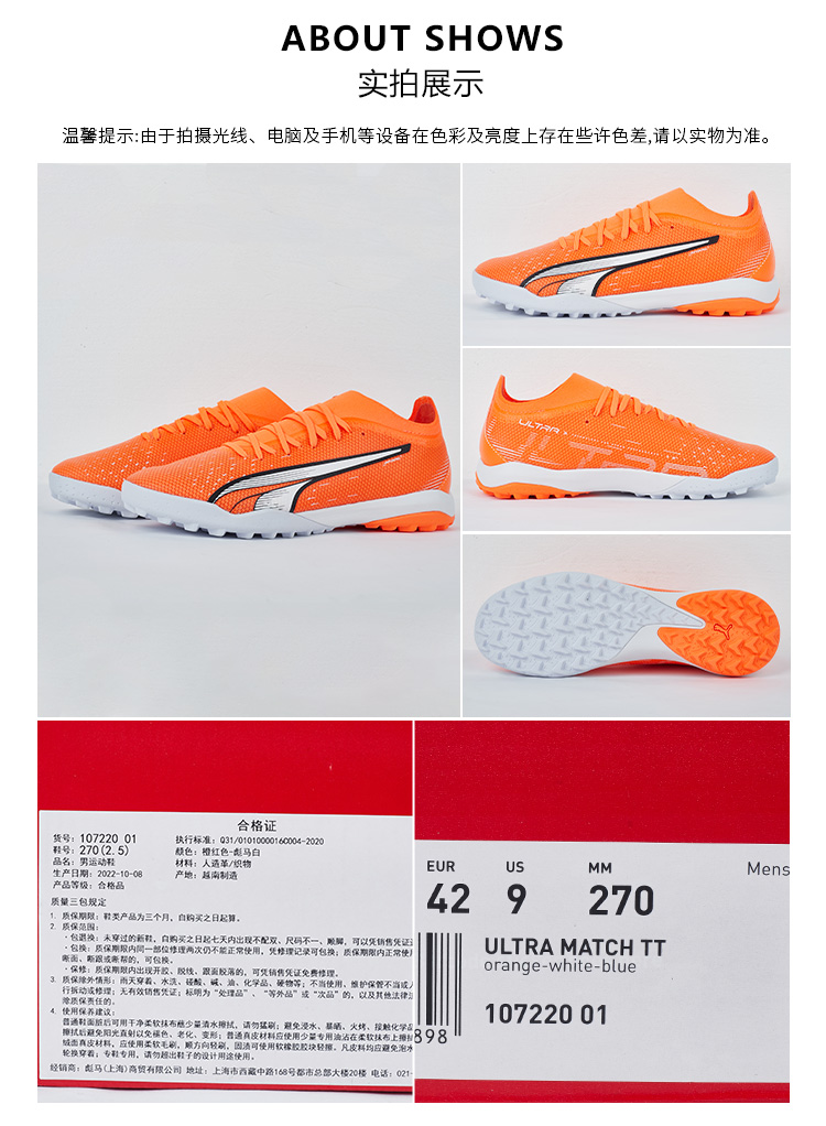 SFS彪马Puma正品ULTRA中端TF碎钉人草低帮足球鞋成人男107220-01