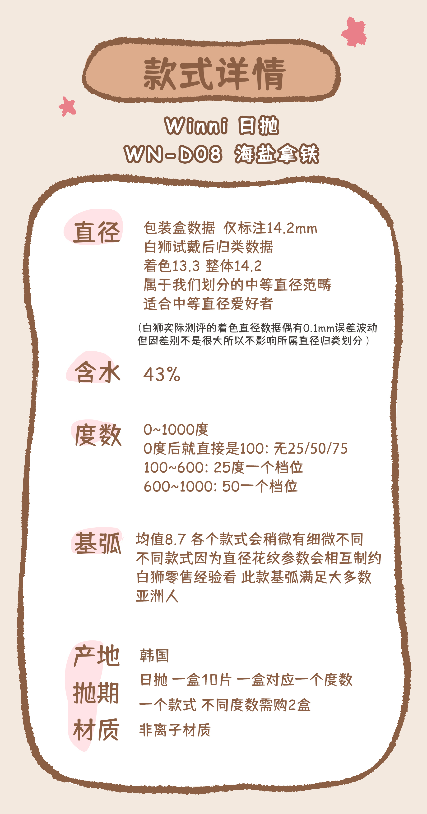 【白狮超推荐!】Winni日抛 · WN-D08 海盐拿铁|14.2mm中等直径|韩国Medios工厂