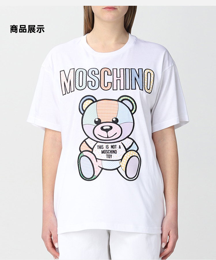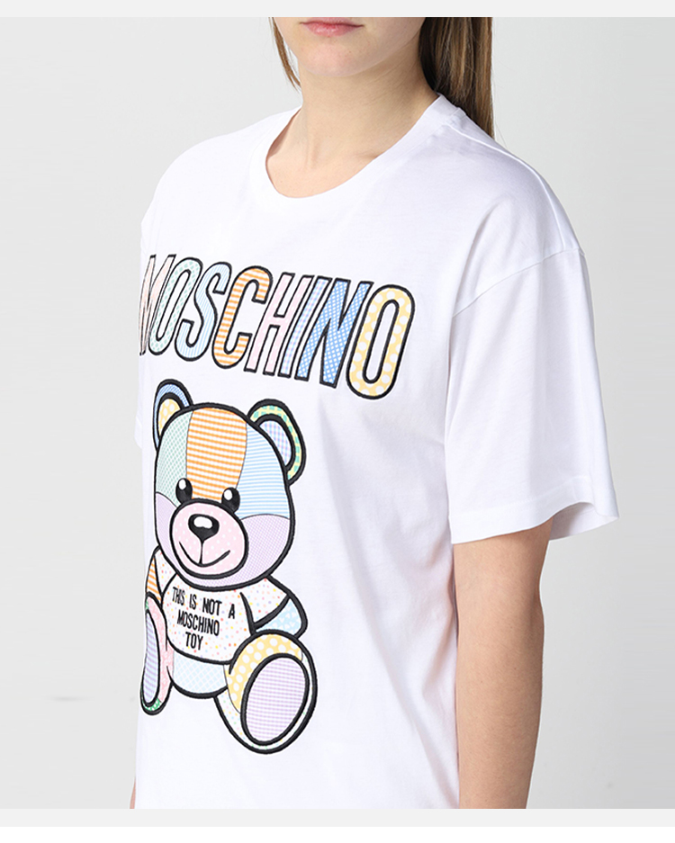 MOSCHINO 莫斯奇诺 女士棉质字母logo大熊猫印花圆领短袖T恤 白色 0707 0441 2001
