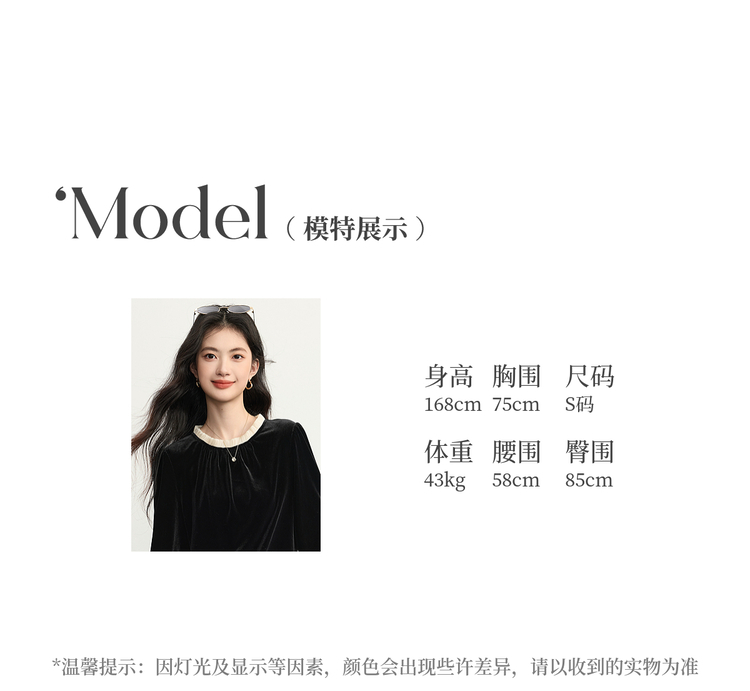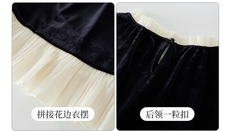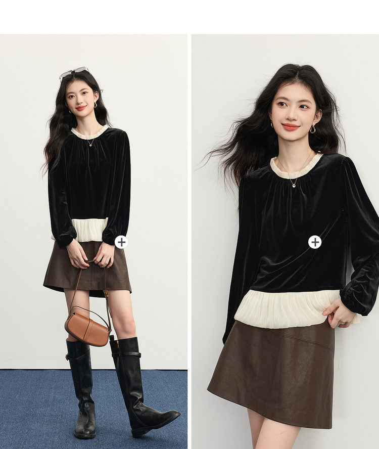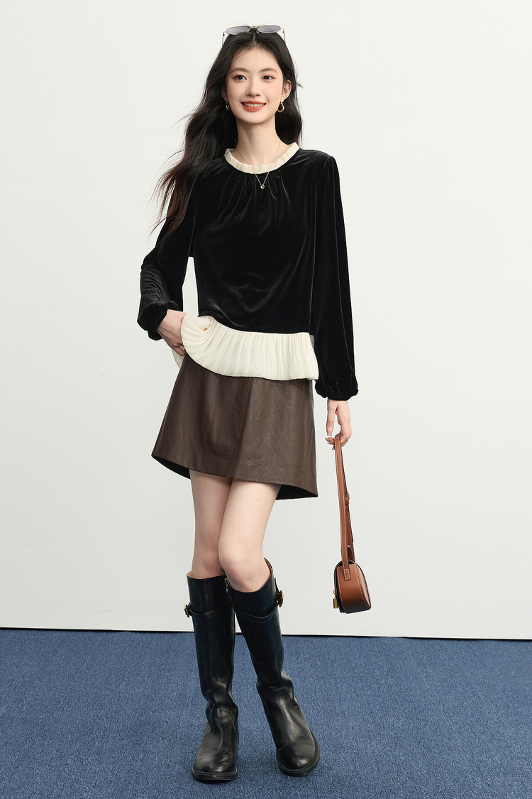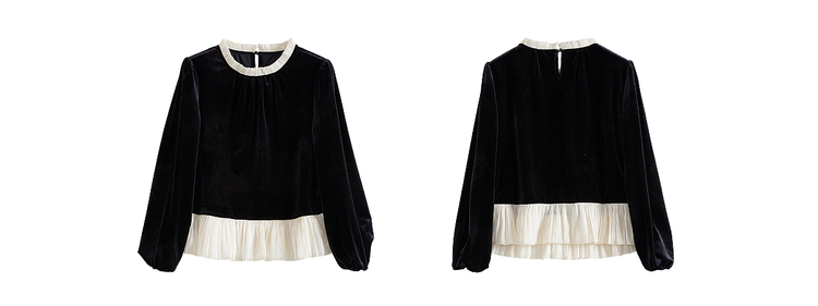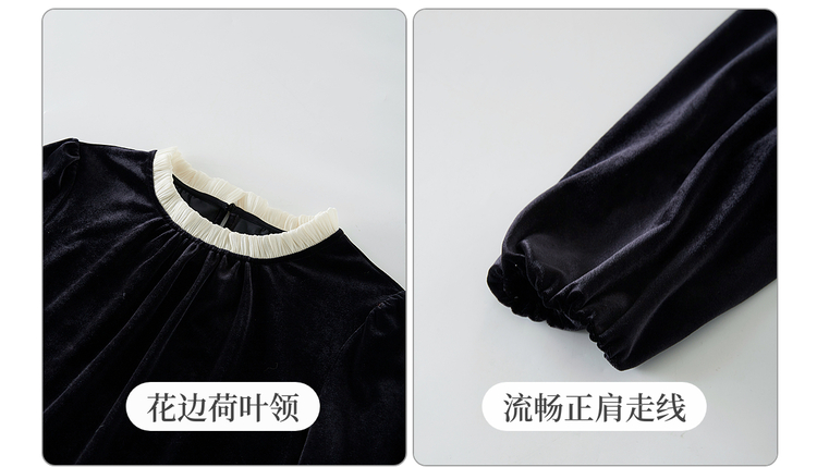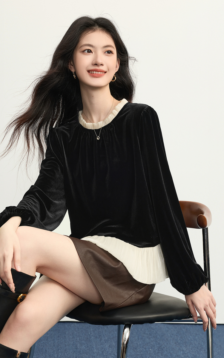 【12/03新品】熙世界鎏光复古丝绒衬衫女秋冬新款法式撞色荷叶边宽松假两件上衣