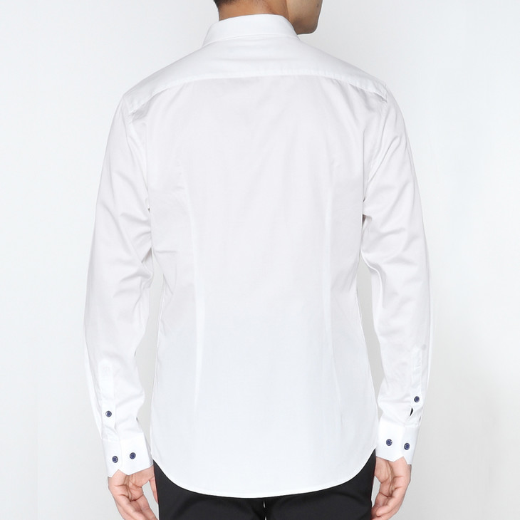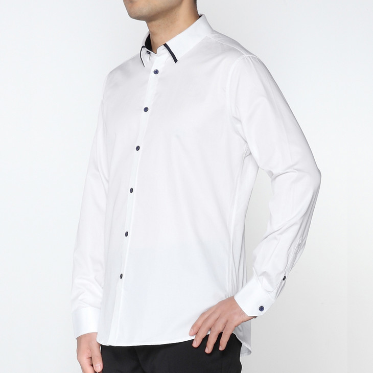 Marco Azzali 白色领尖异色拼接长袖衬衫 C5206300
