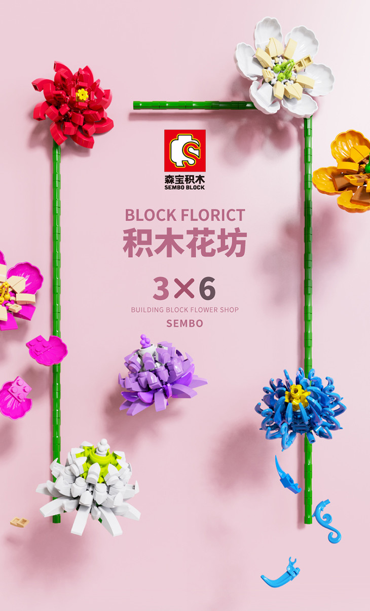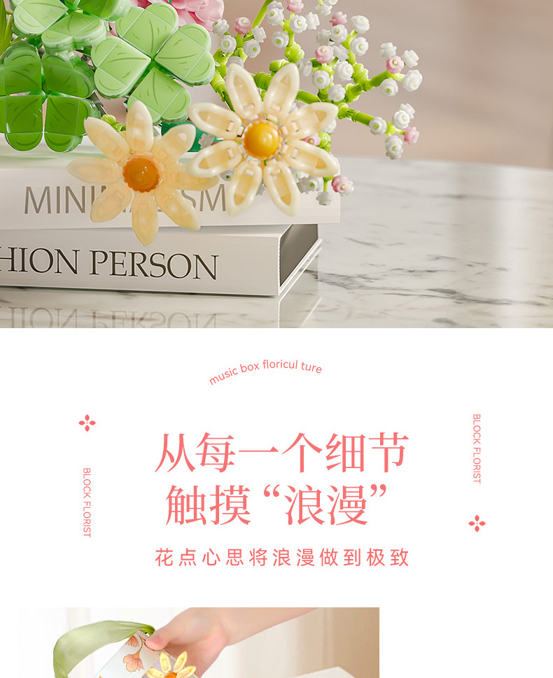 【森宝积木花清仓系列】 森宝花颜月下积木/花筒积木花玫瑰花向日葵拼装花束 超多花型为生活添色