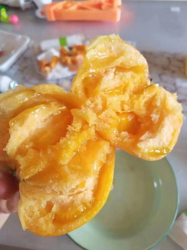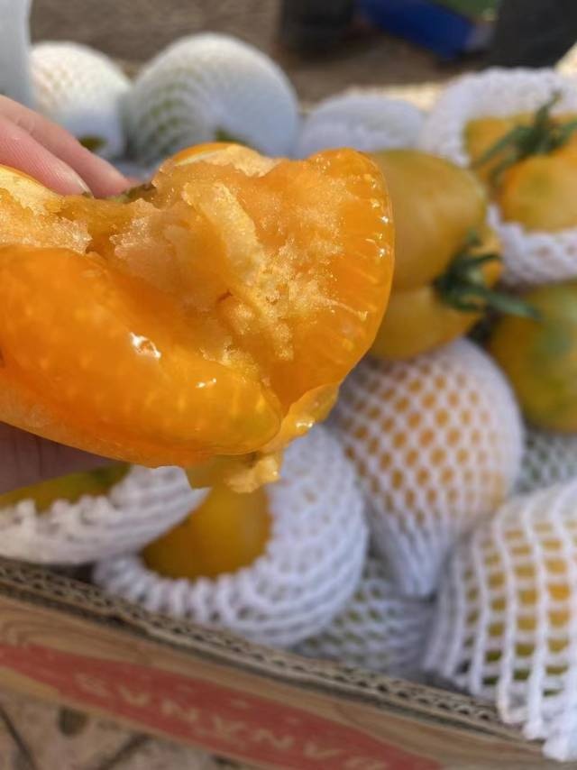 3、黄柿子是人工筛选,所以个别会有轻微大小不一的情况,也会有空格,以具体收到的斤数为准