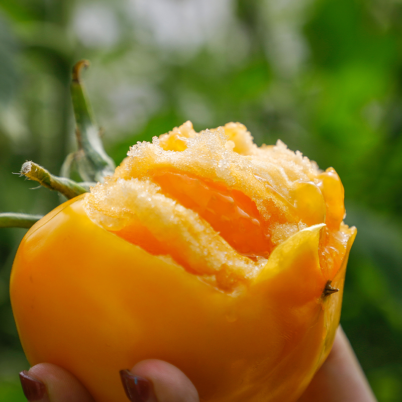 2、如果收到果子底部有部分开裂口,属于黄柿子老品种正常情况,并非坏果,如裂口发生腐坏可找售后客服申请售后