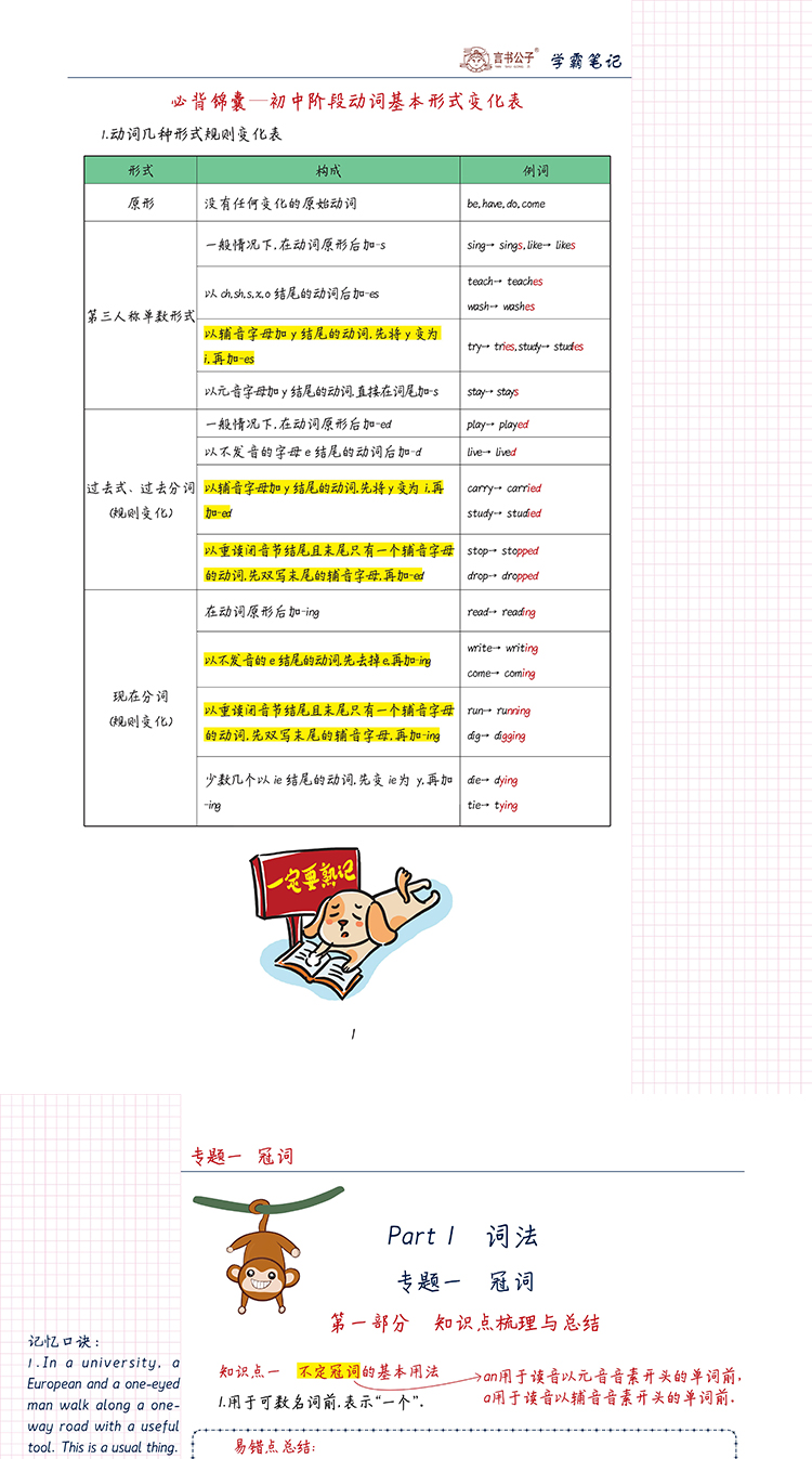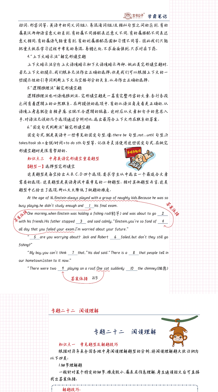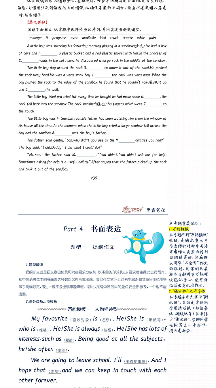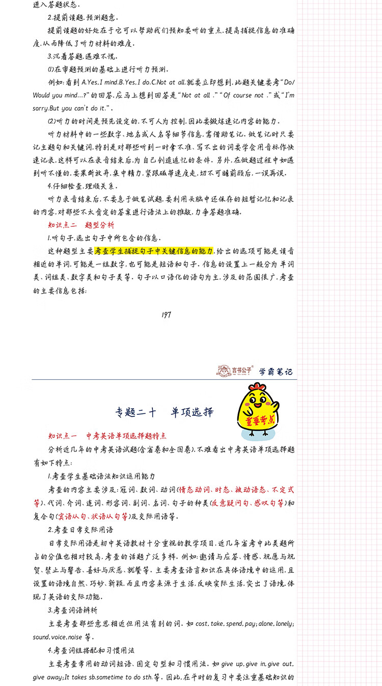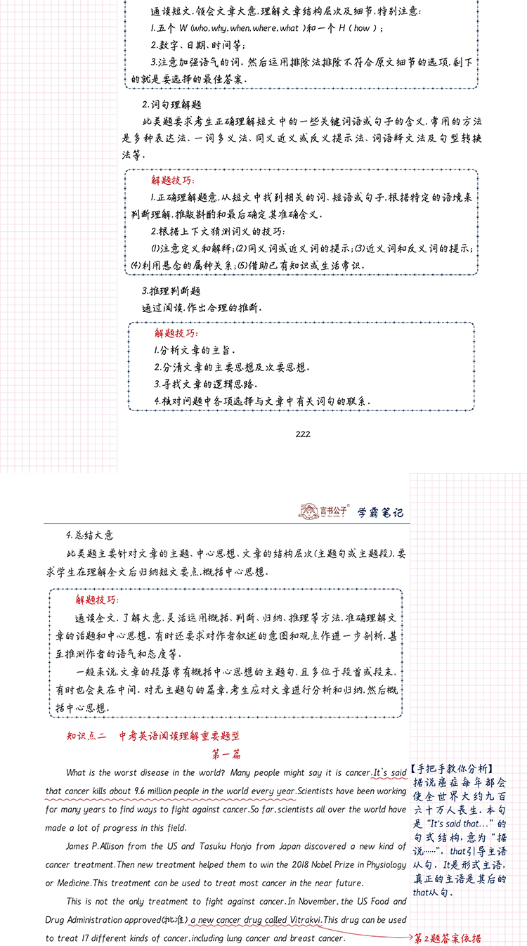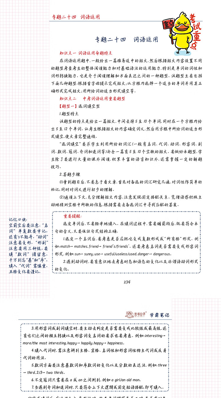 学霸笔记手写初中英语衡水中学状元辅导书初三下册数学物理化学生物语文英语七八九年级初一初二总复习资料书
