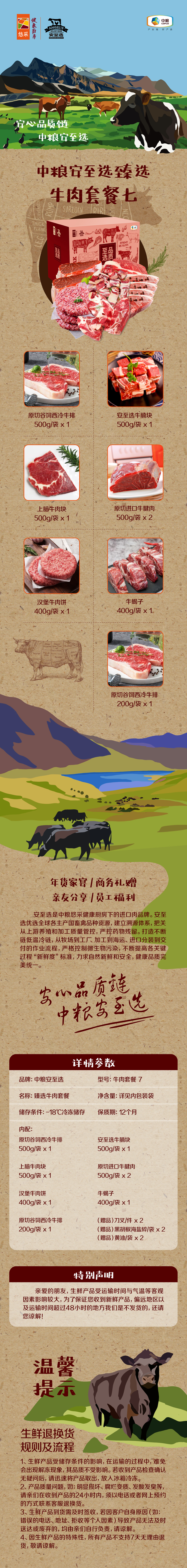 【分仓直发包邮】中粮安至选甄选牛肉3500g套餐7(生鲜冻品收到货后请及时放入冰箱储存,如在运输过程中有解冻属正常现象,并不影响品质,请放心食用!)