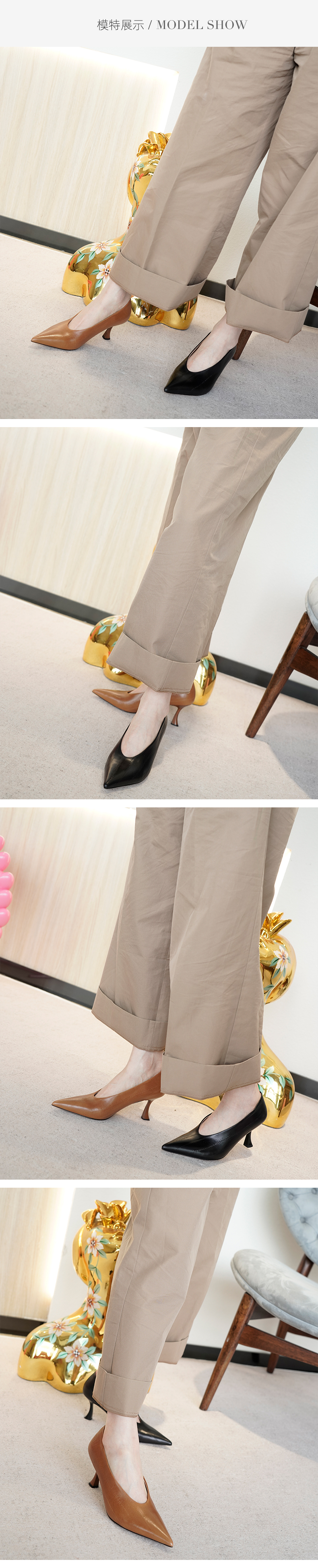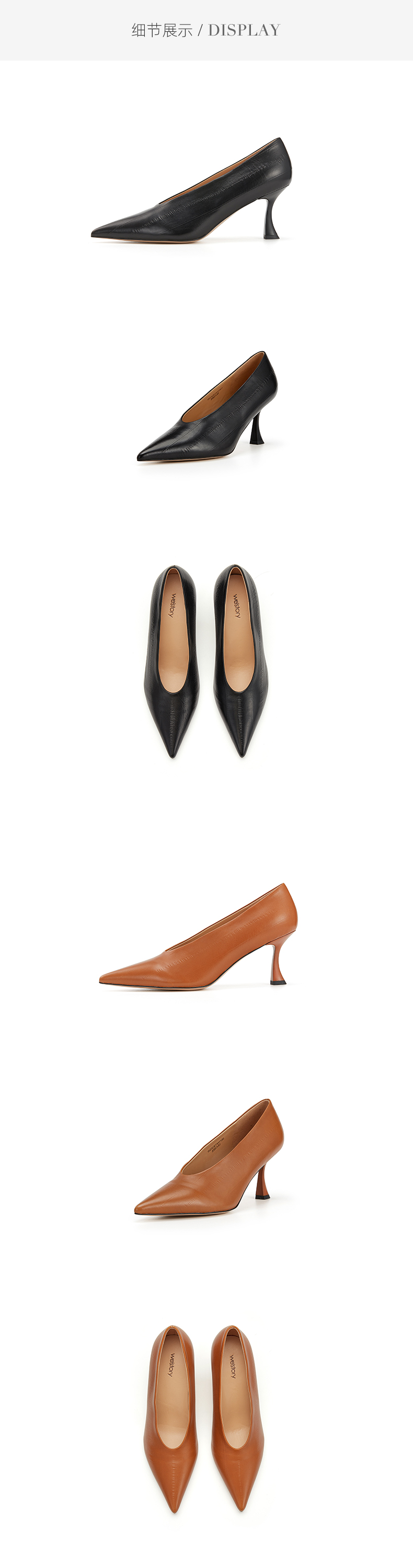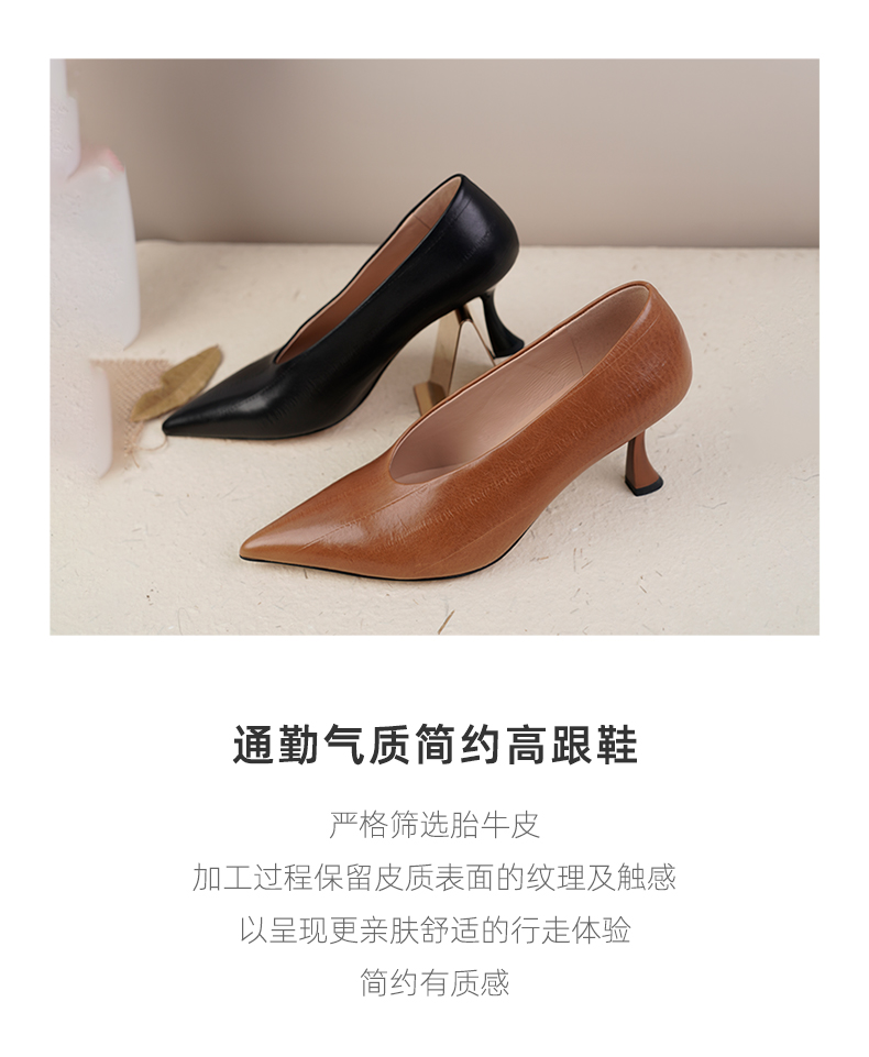 westory奶奶单鞋尖头气质漆皮百搭舒适真皮不累脚高跟鞋W23CE73111