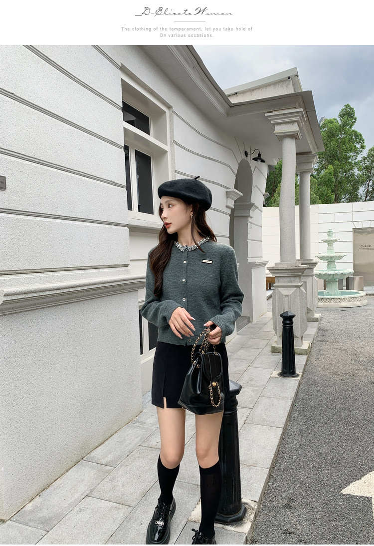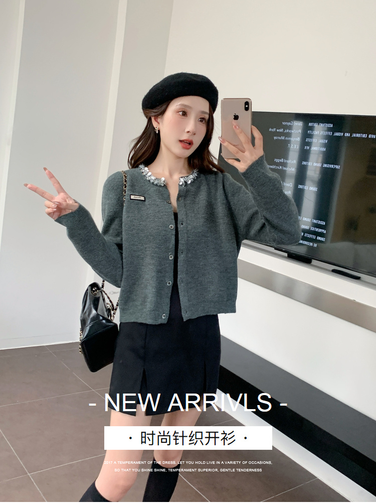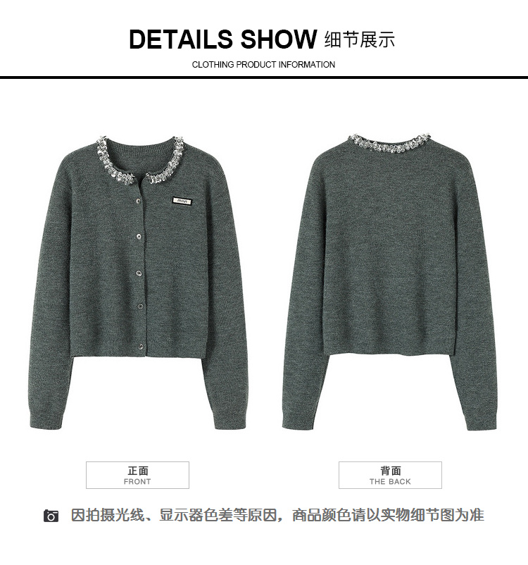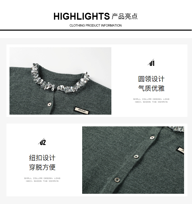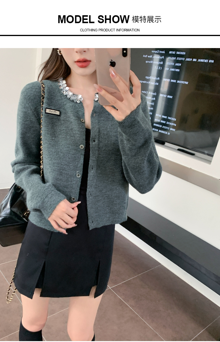 奢姿大码女装2024秋季钻饰设计针织开衫胖妹妹时尚简约百搭上衣8843368250