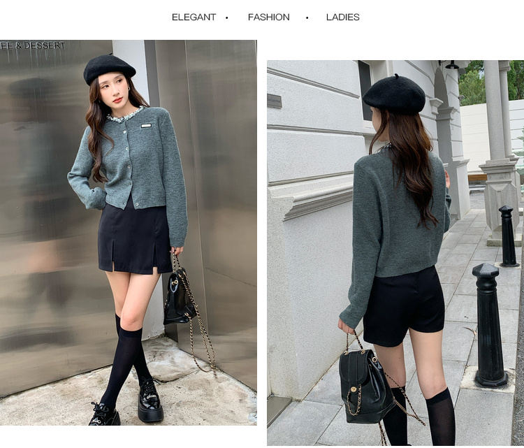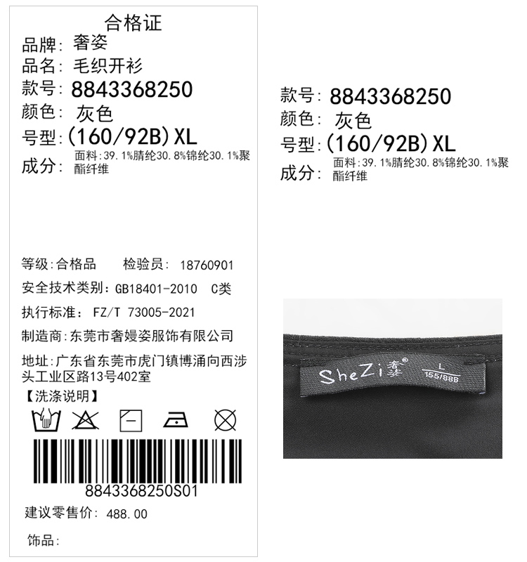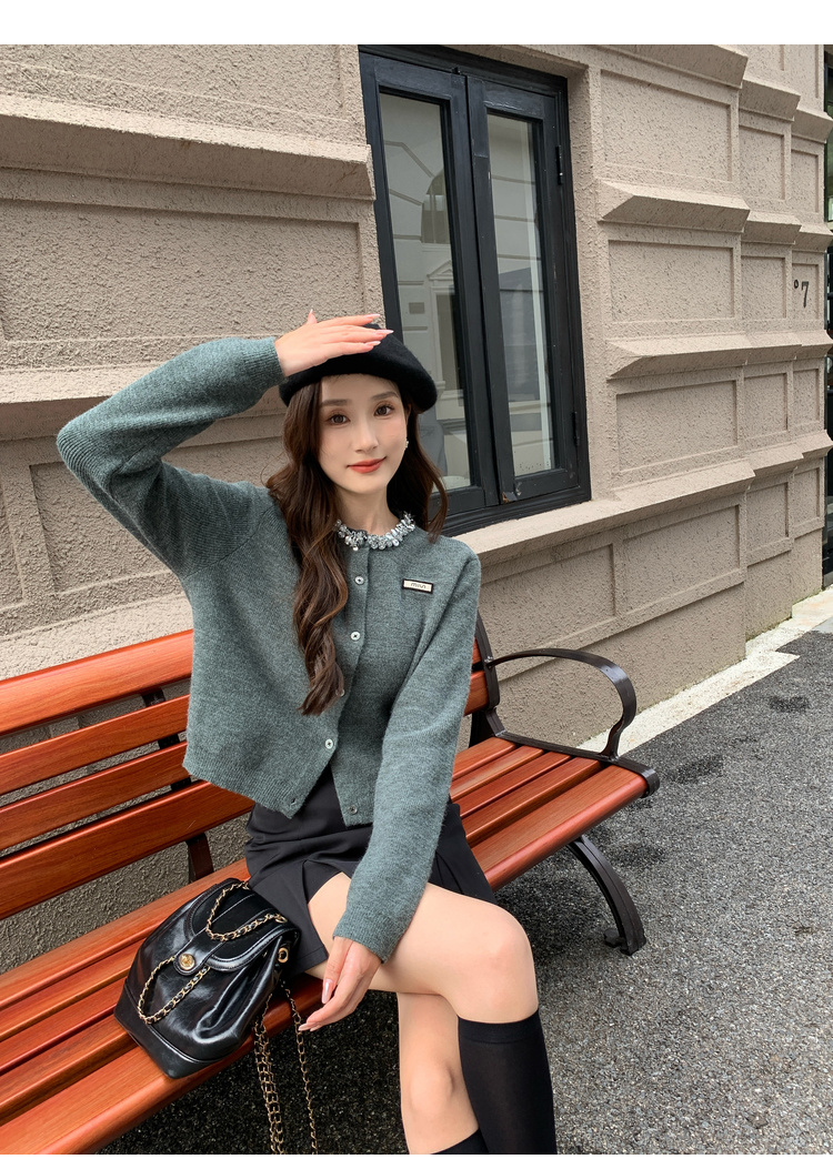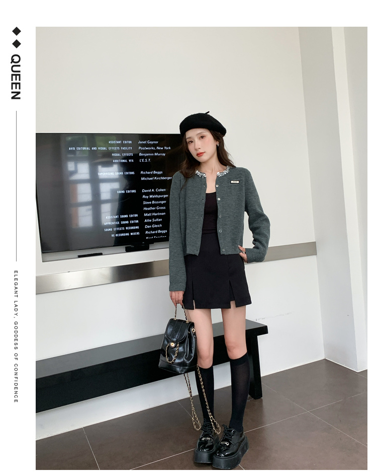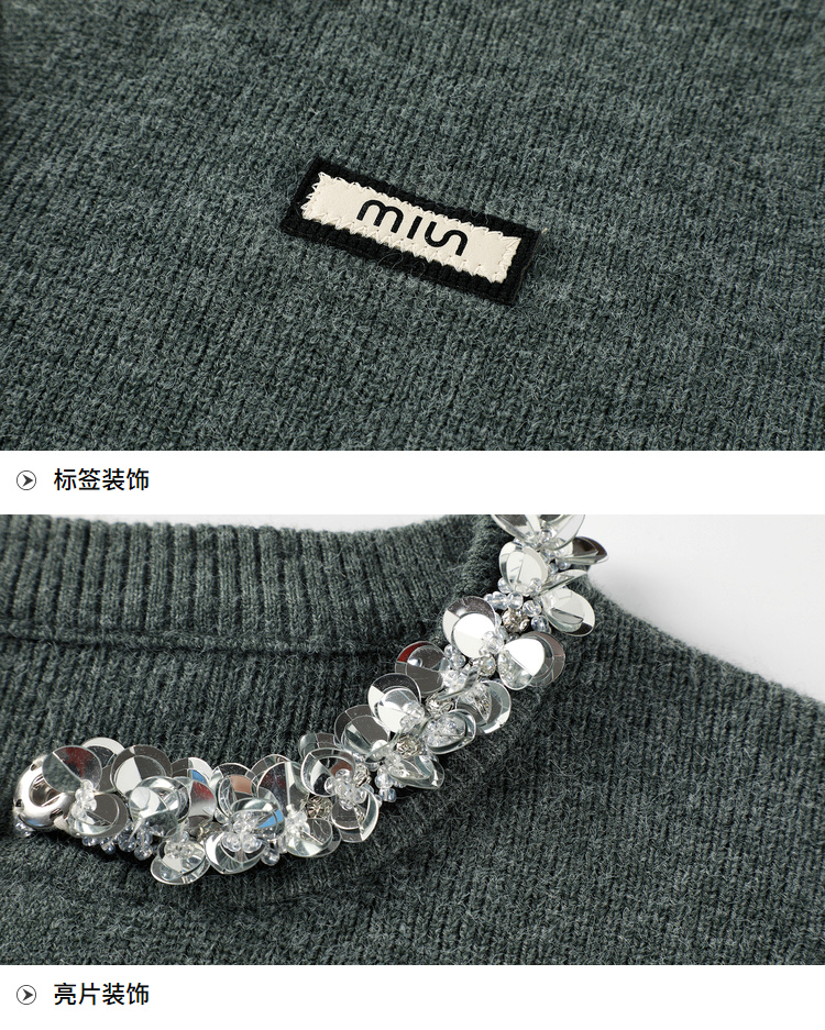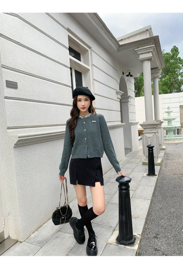 奢姿大码女装2024秋季钻饰设计针织开衫胖妹妹时尚简约百搭上衣8843368250