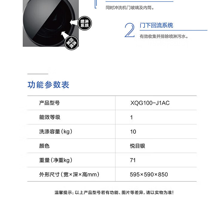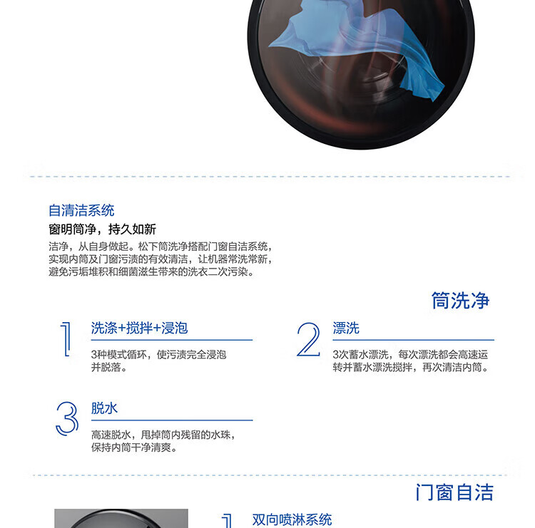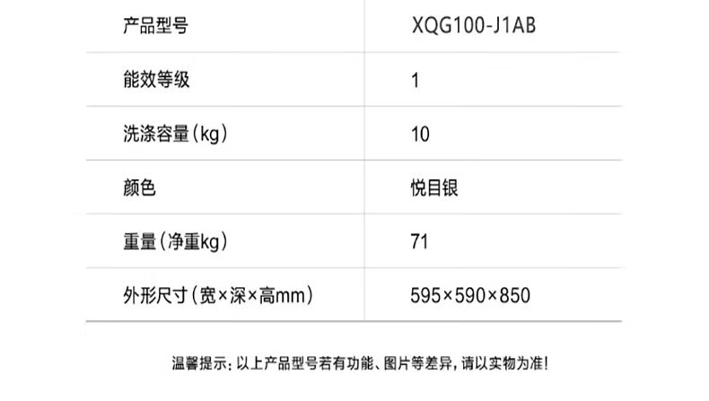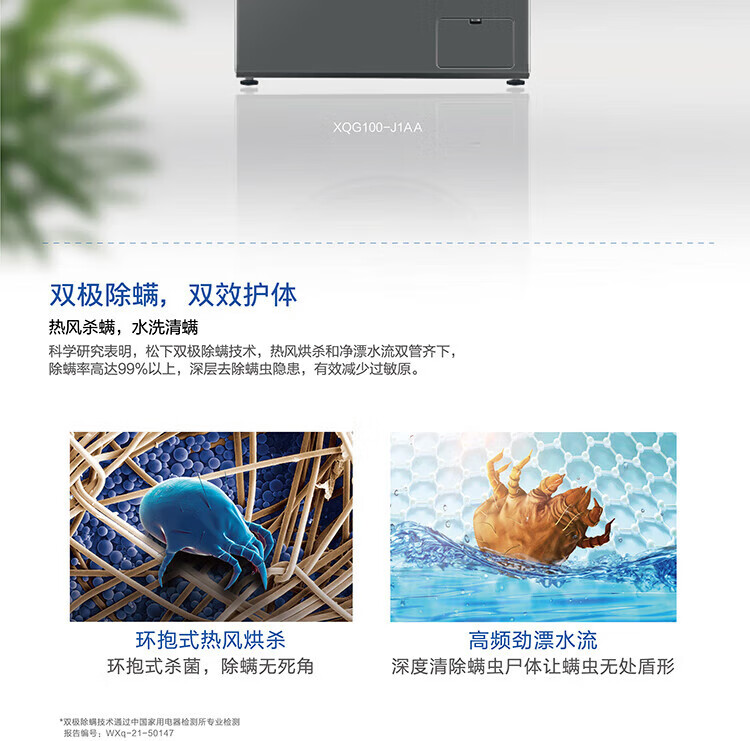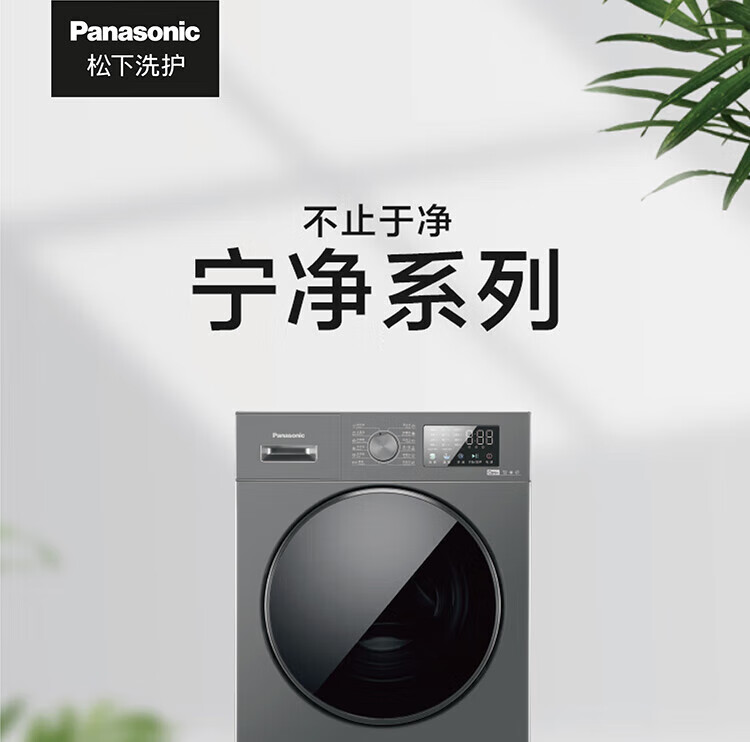 松下滚筒洗衣机 除菌空气洗 双极除螨高温除菌洗 旋钮触控XQG100-J1AB 灰色
