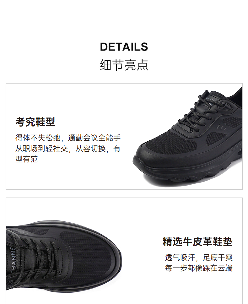 千百度秋季商务休闲鞋牛皮革脚垫通勤会议通用男鞋A25411233