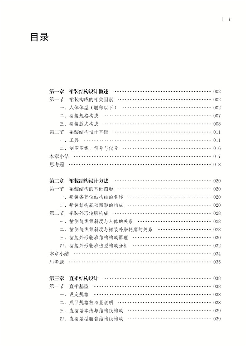 第二节 裙装外形轮廓构成… ……………………………………………… 028