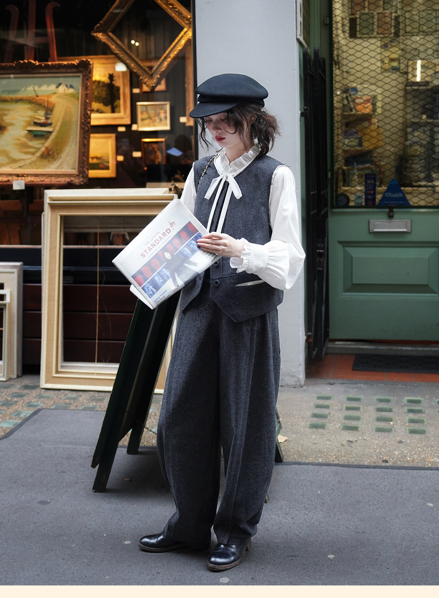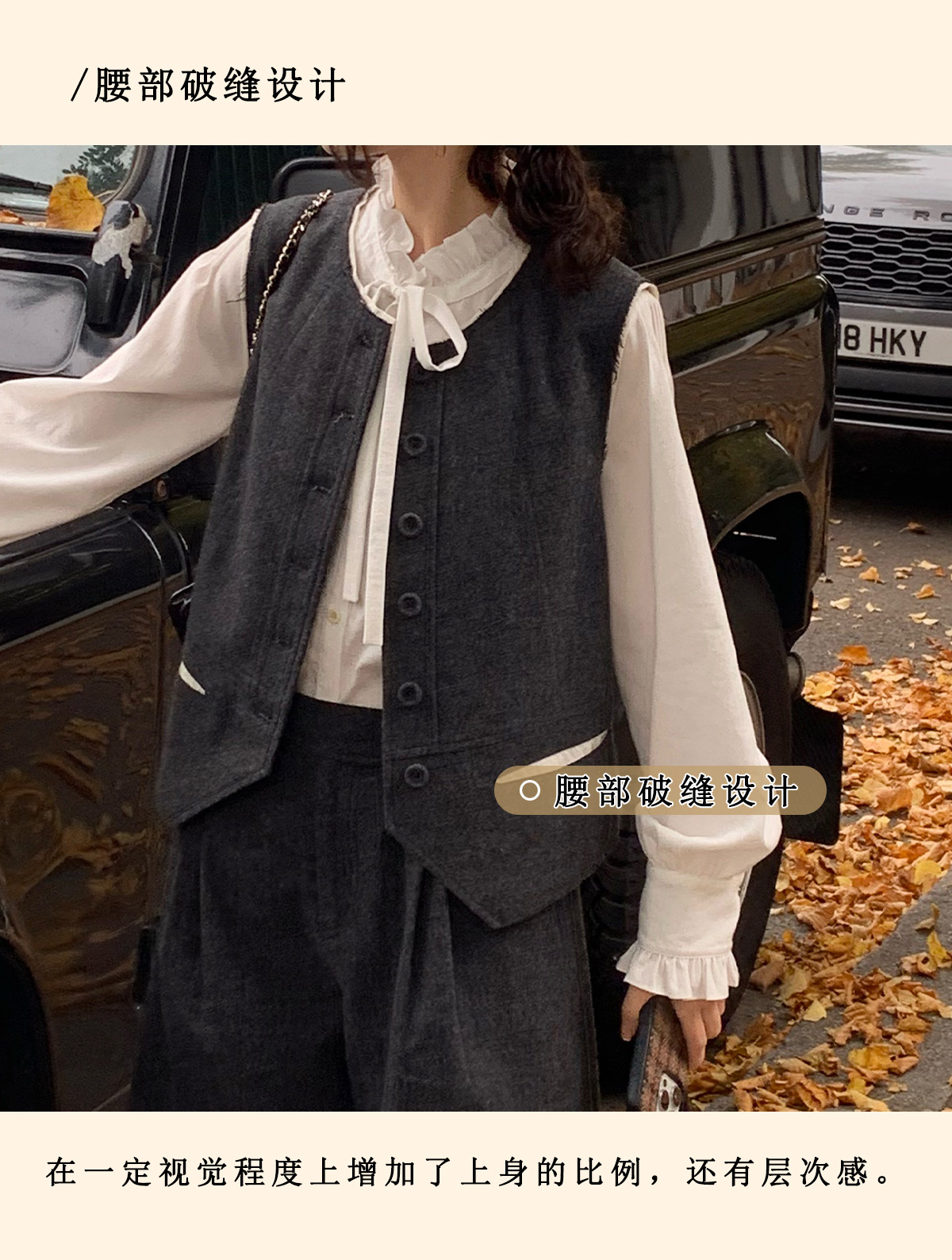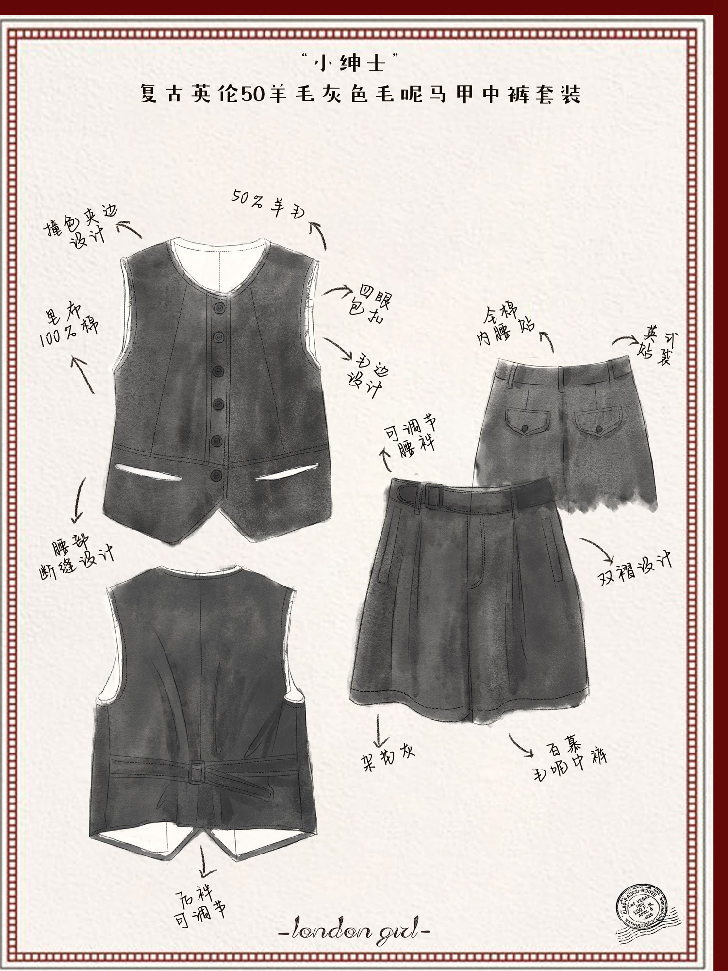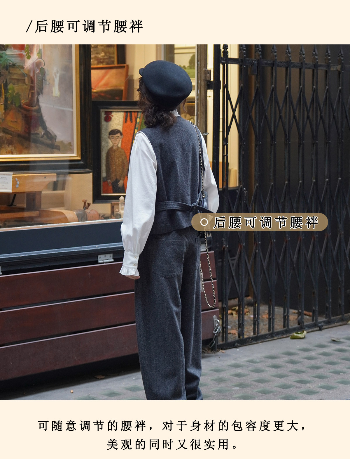 浮生八记/25C147/25D230/复古英伦50羊毛灰色毛呢马甲中裤