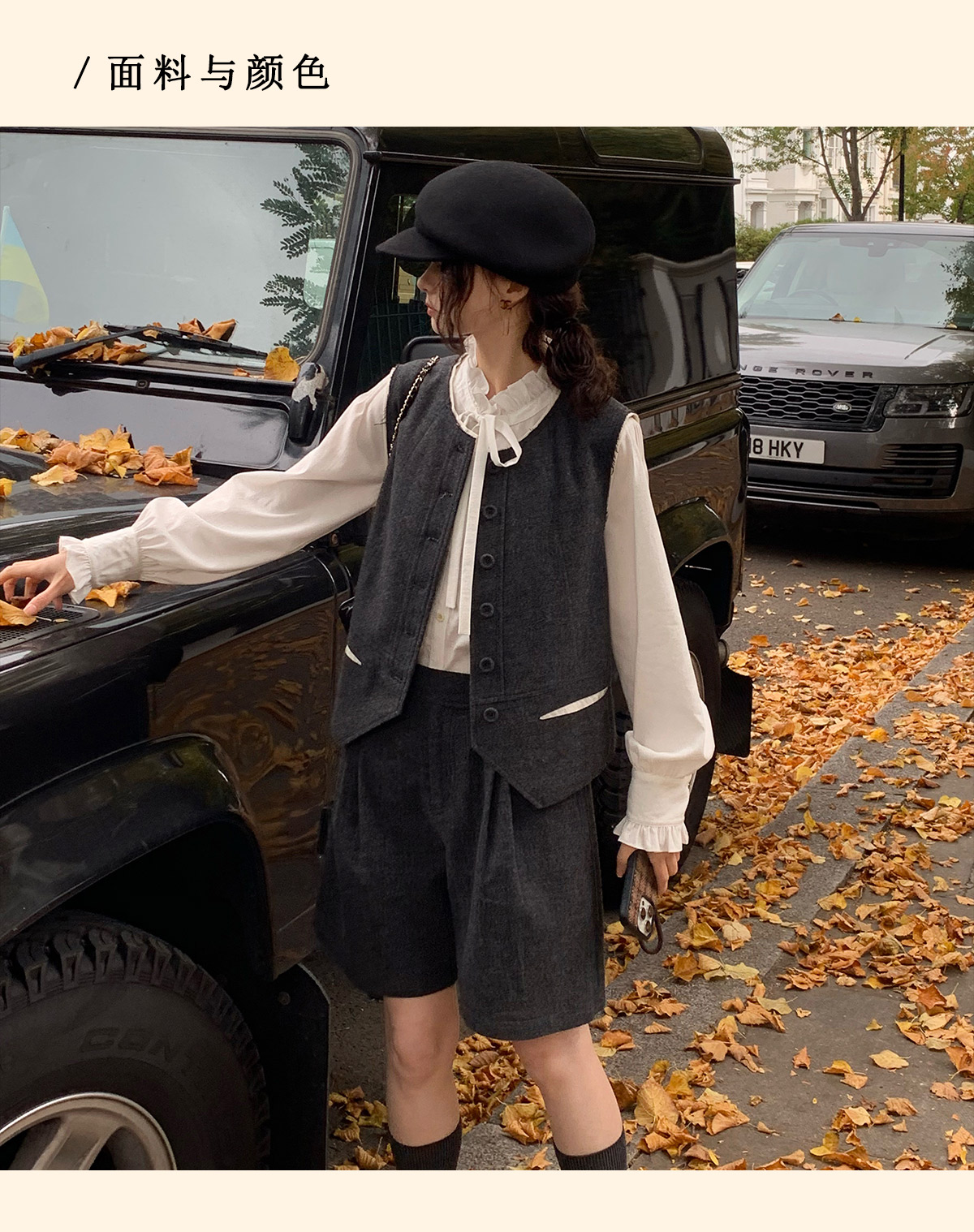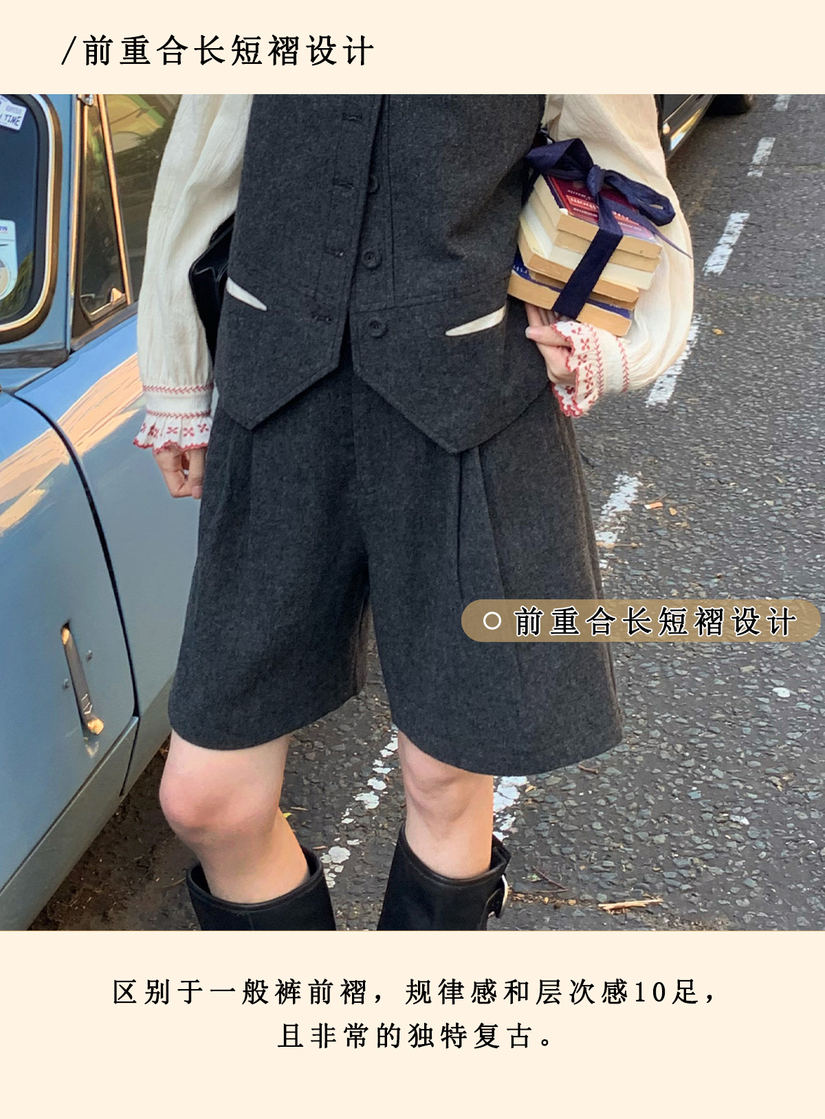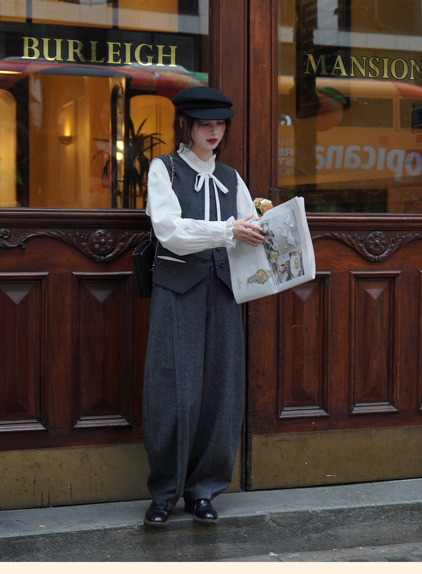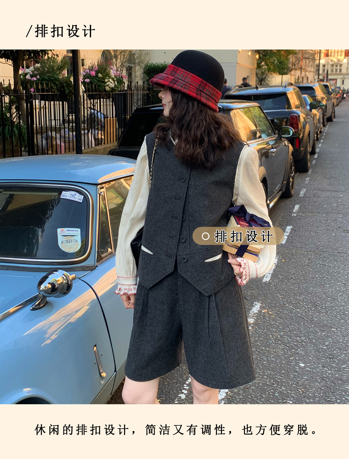 浮生八记/25C147/25D230/复古英伦50羊毛灰色毛呢马甲中裤