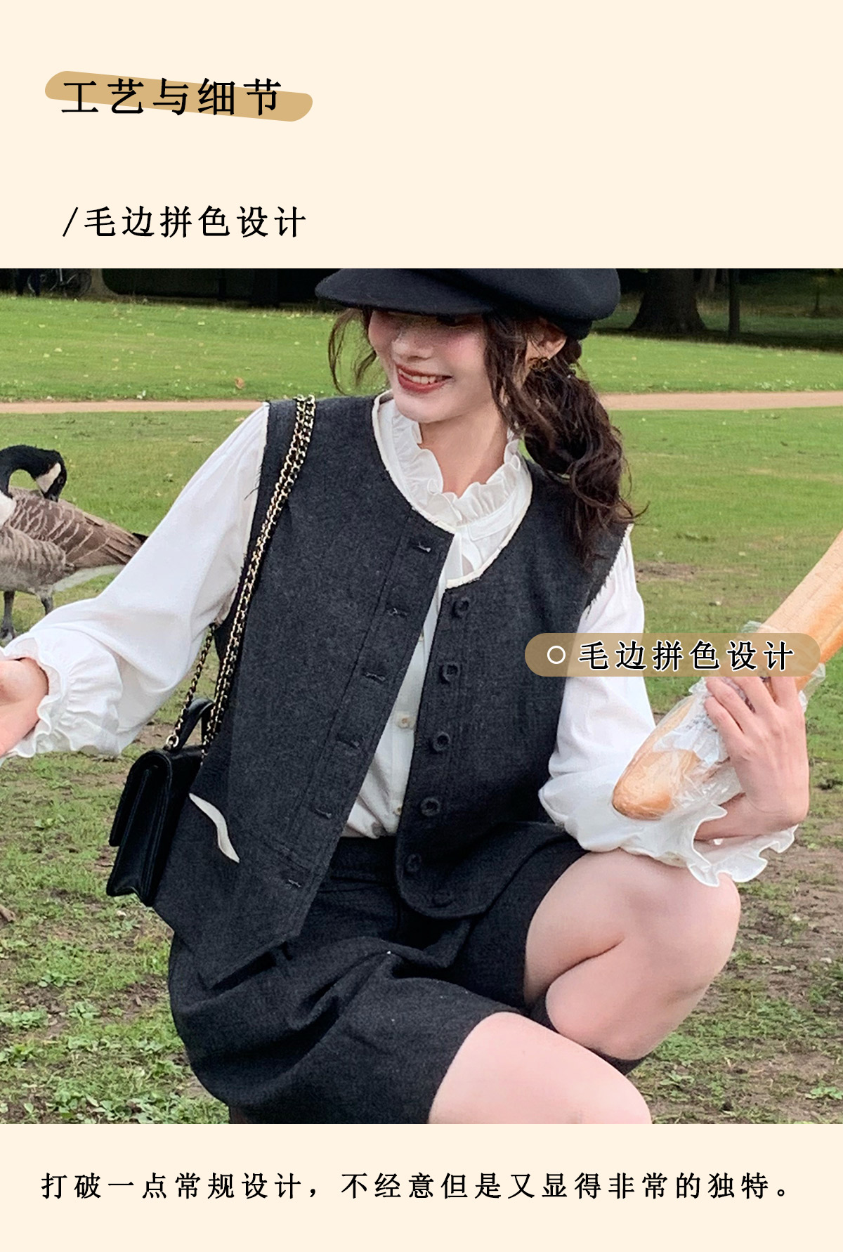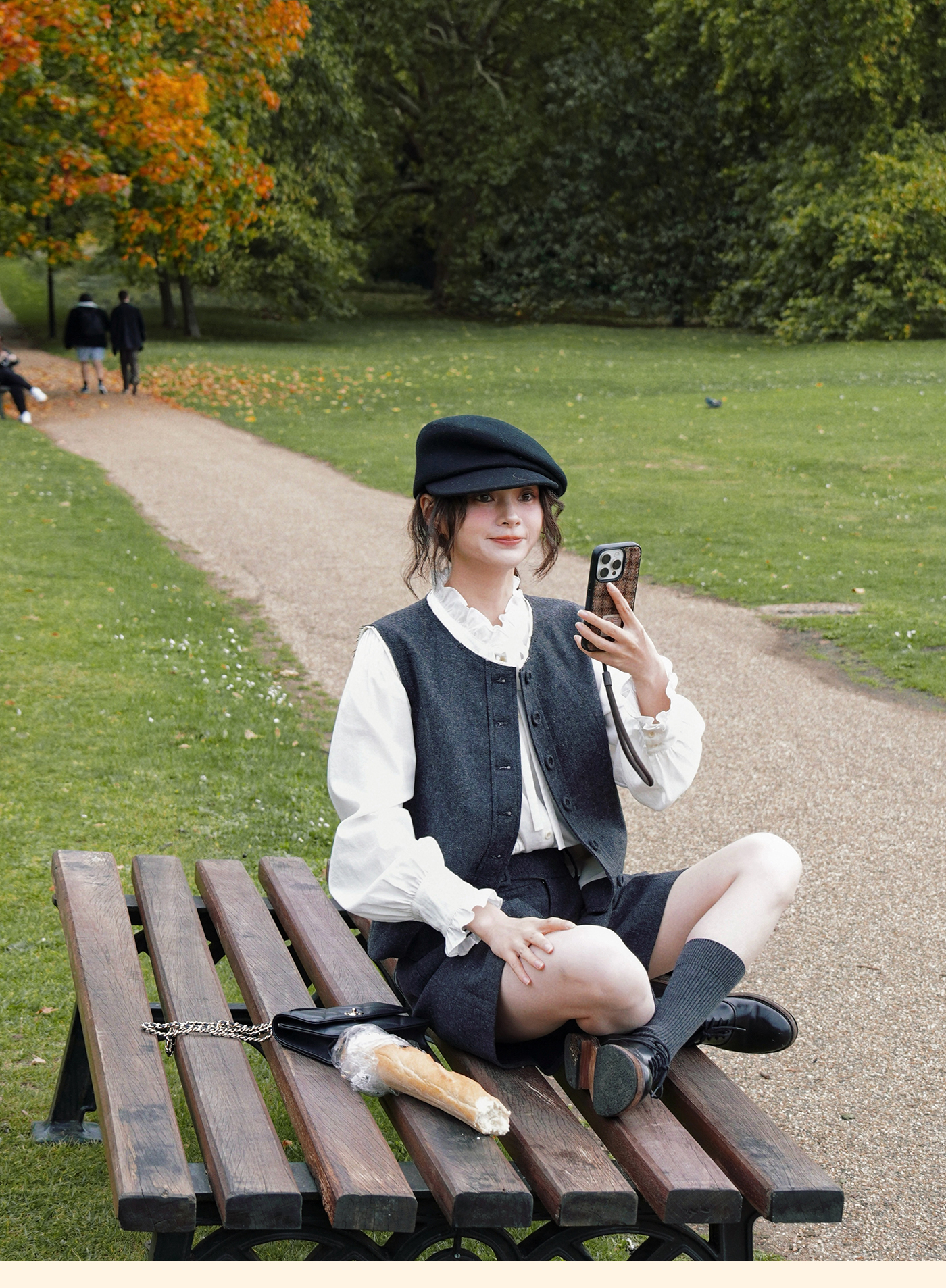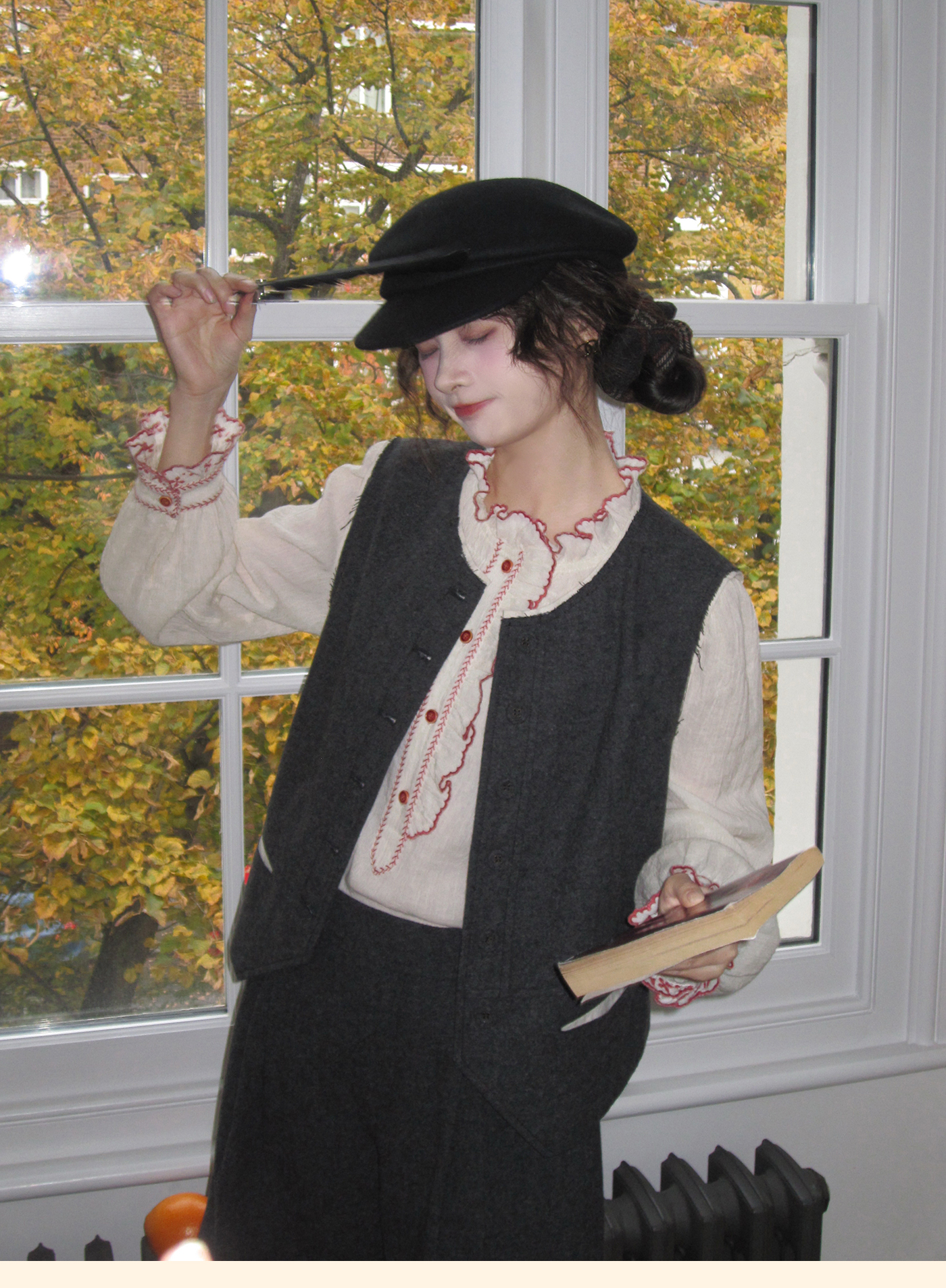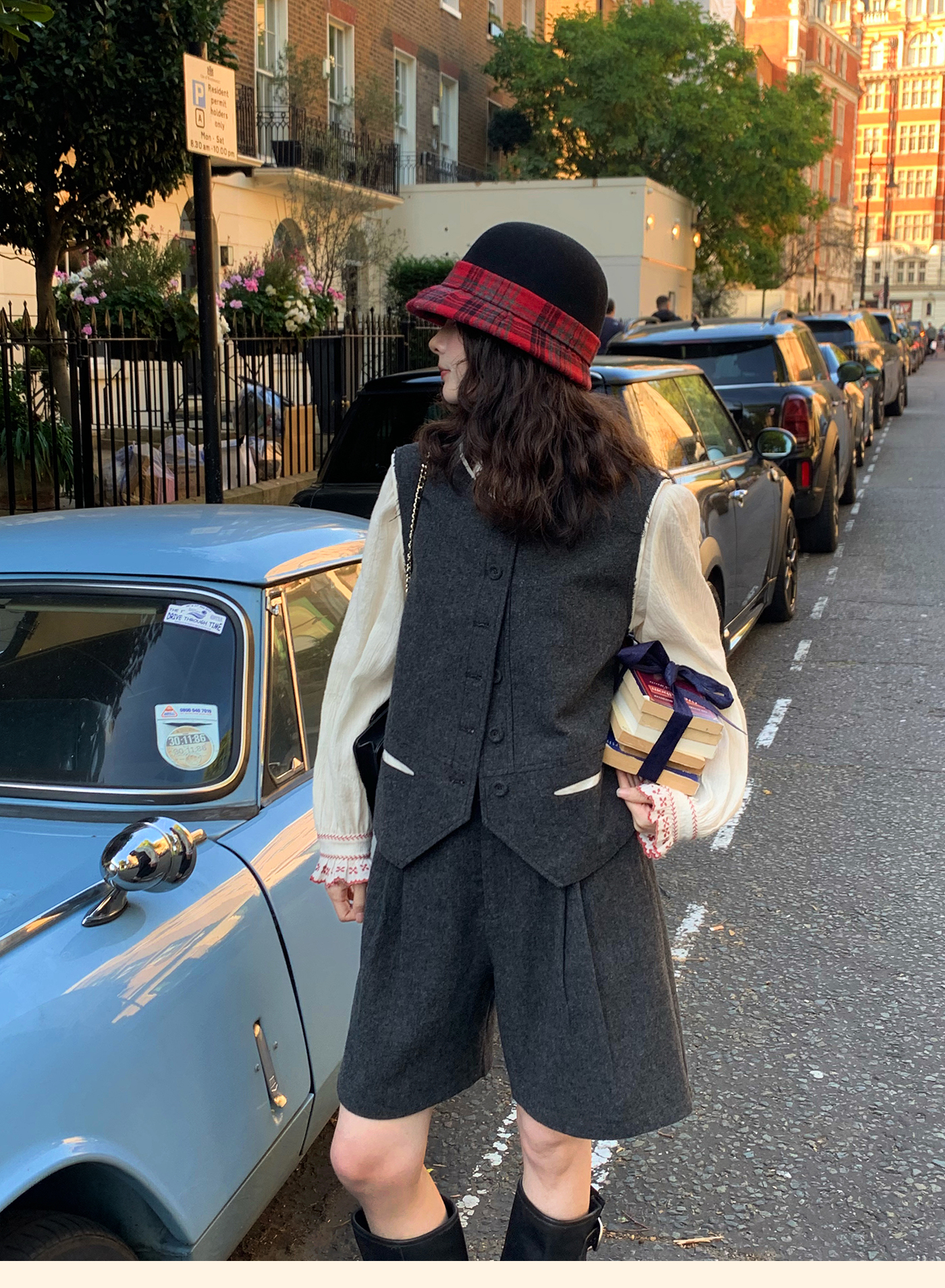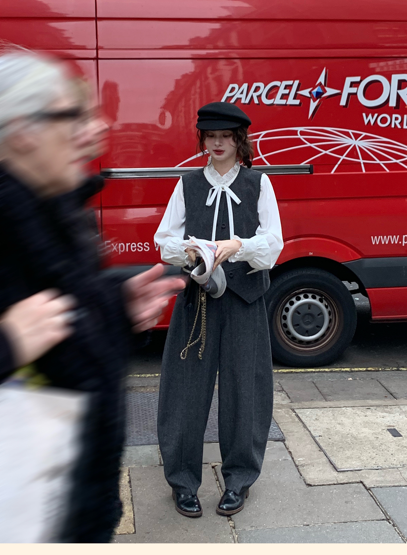 浮生八记/25C147/25D230/复古英伦50羊毛灰色毛呢马甲中裤