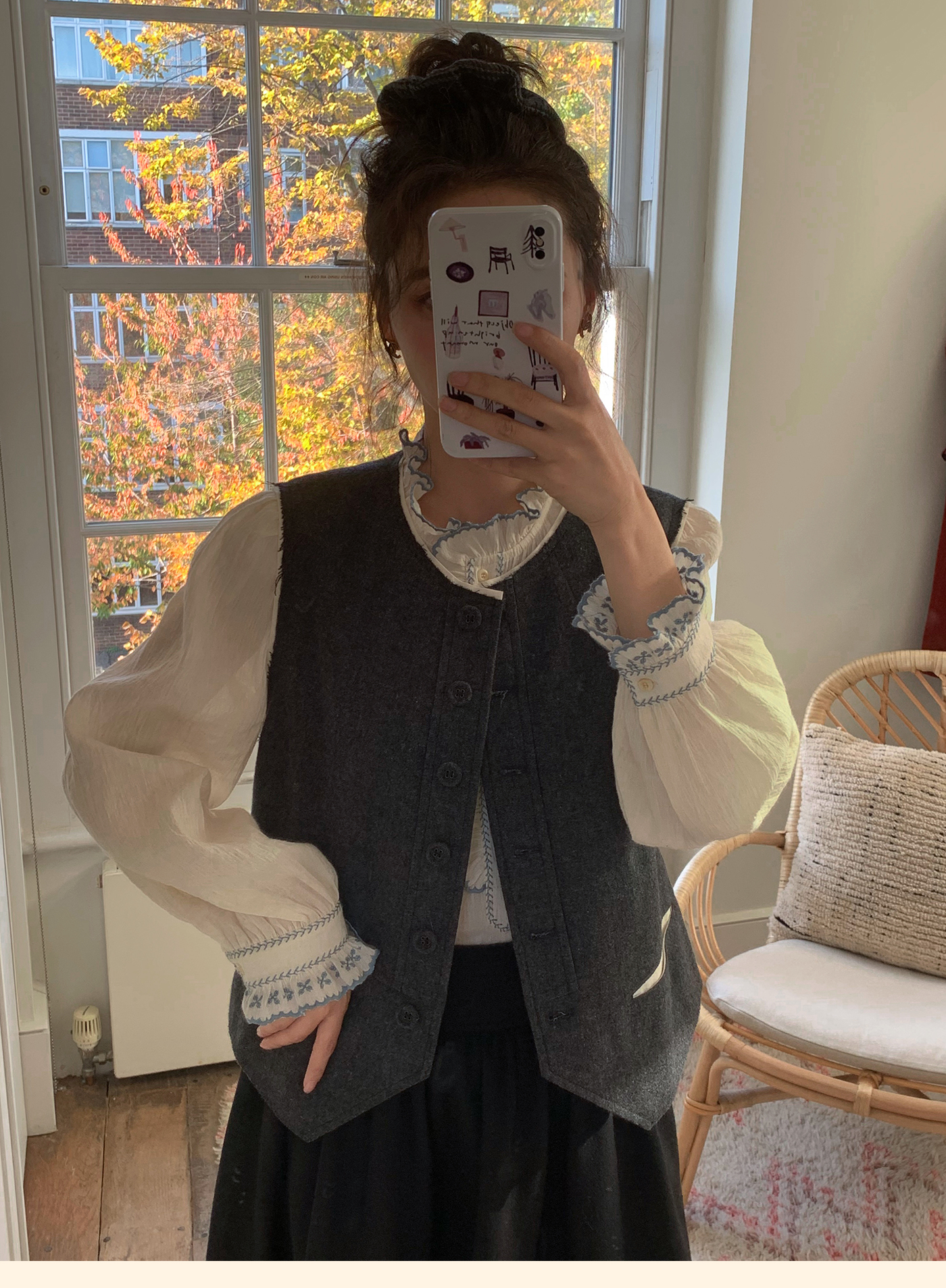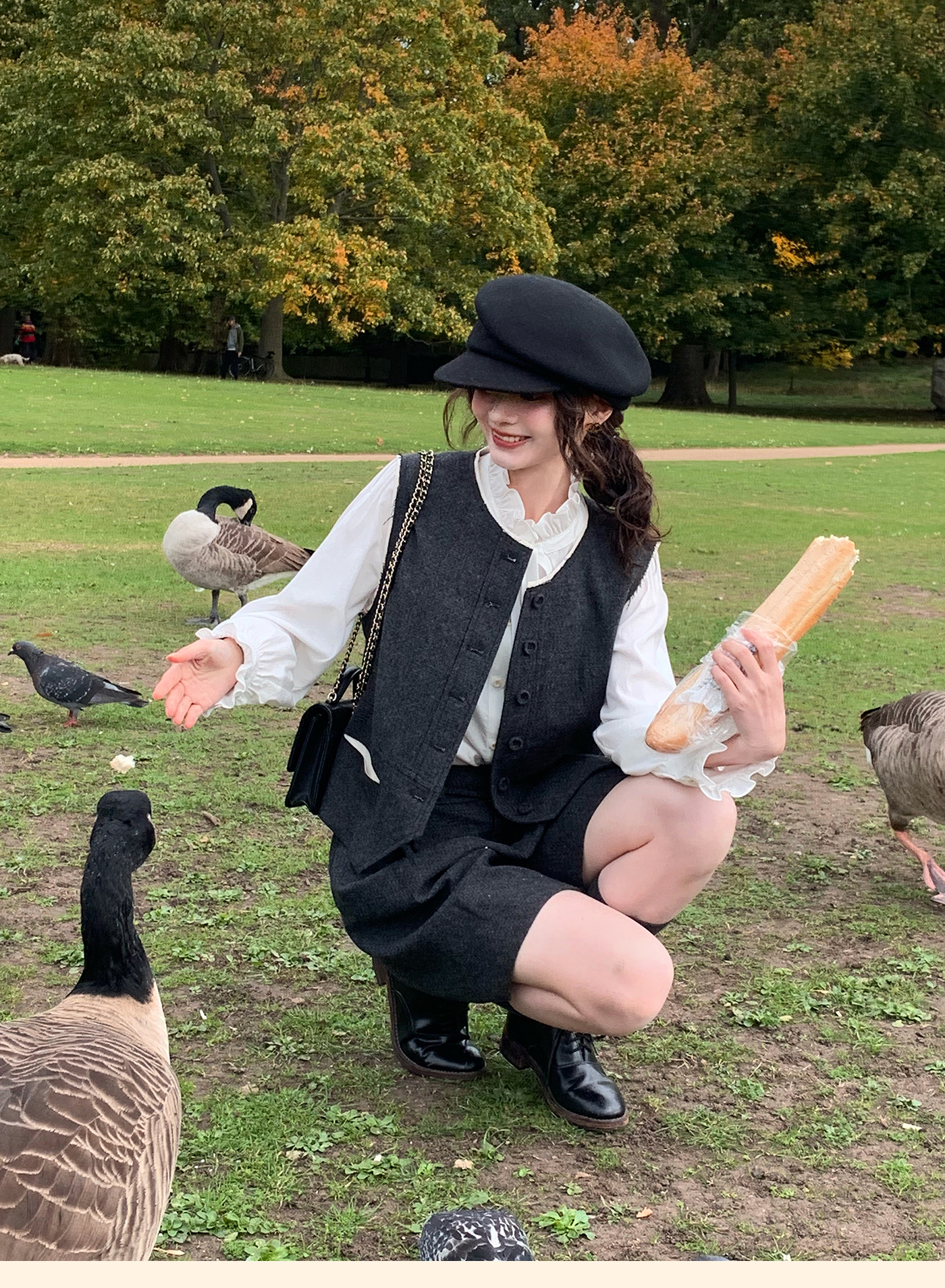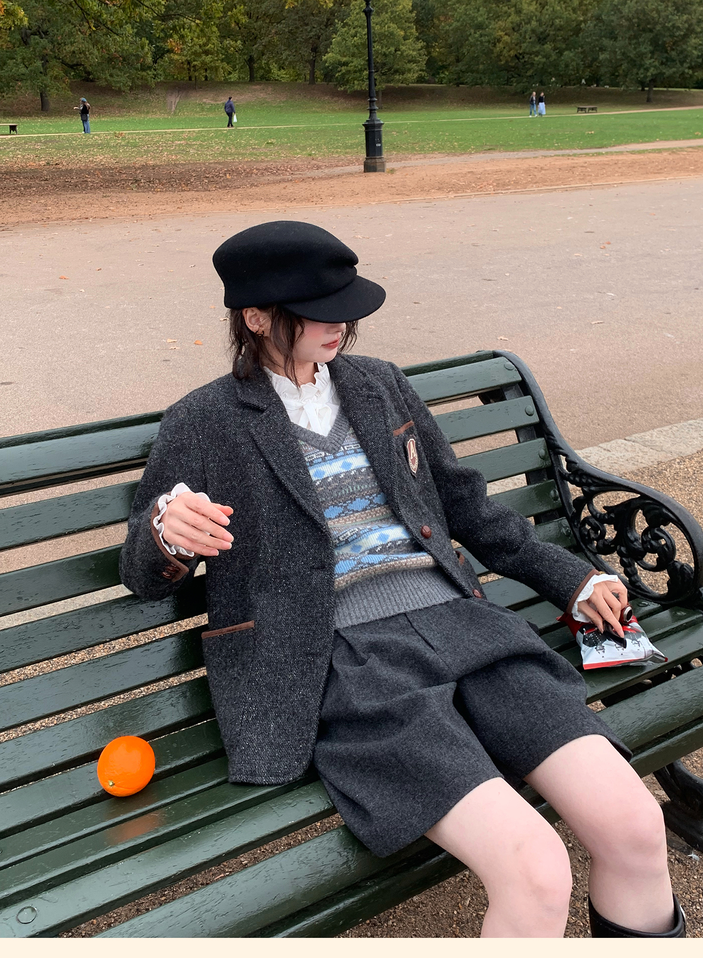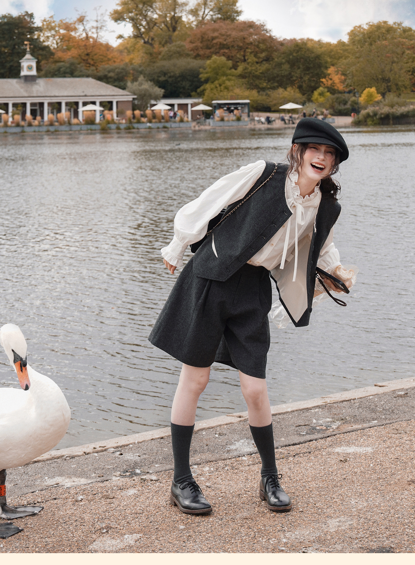 浮生八记/25C147/25D230/复古英伦50羊毛灰色毛呢马甲中裤