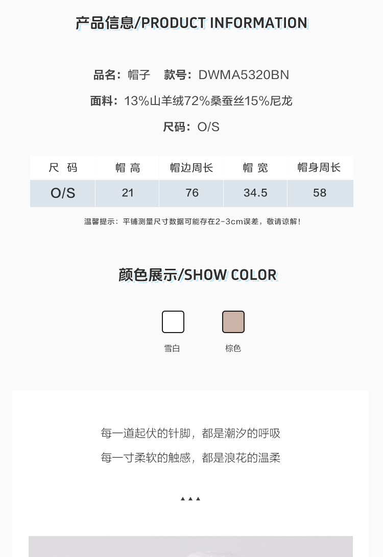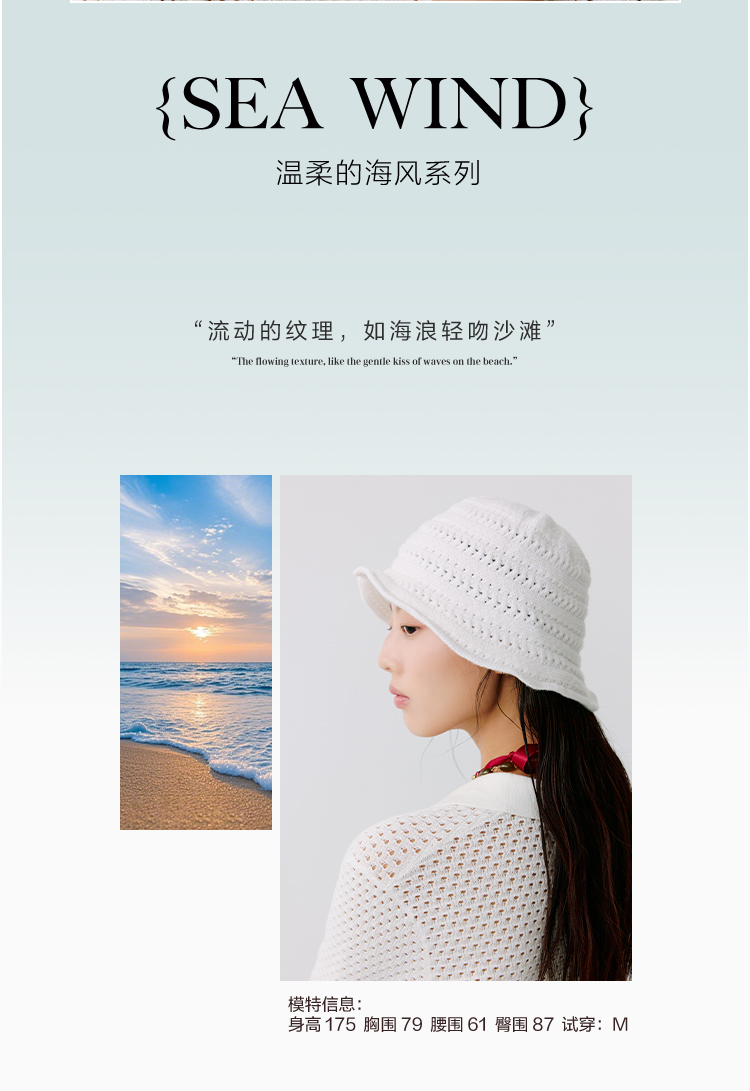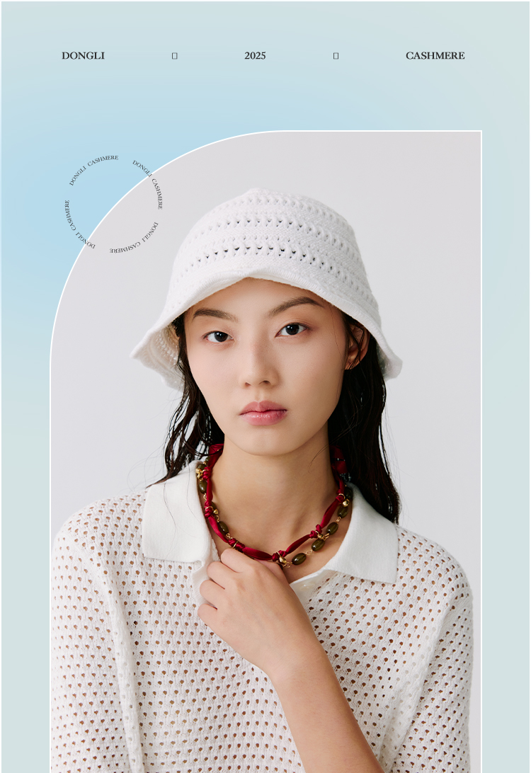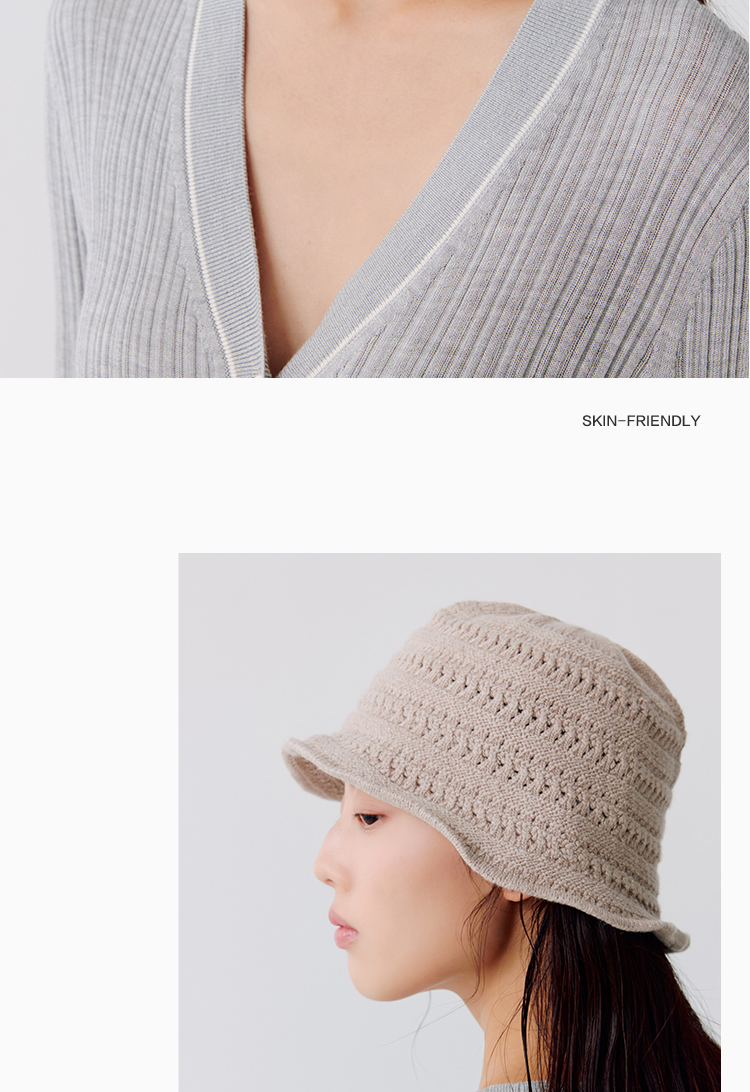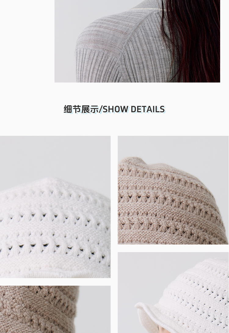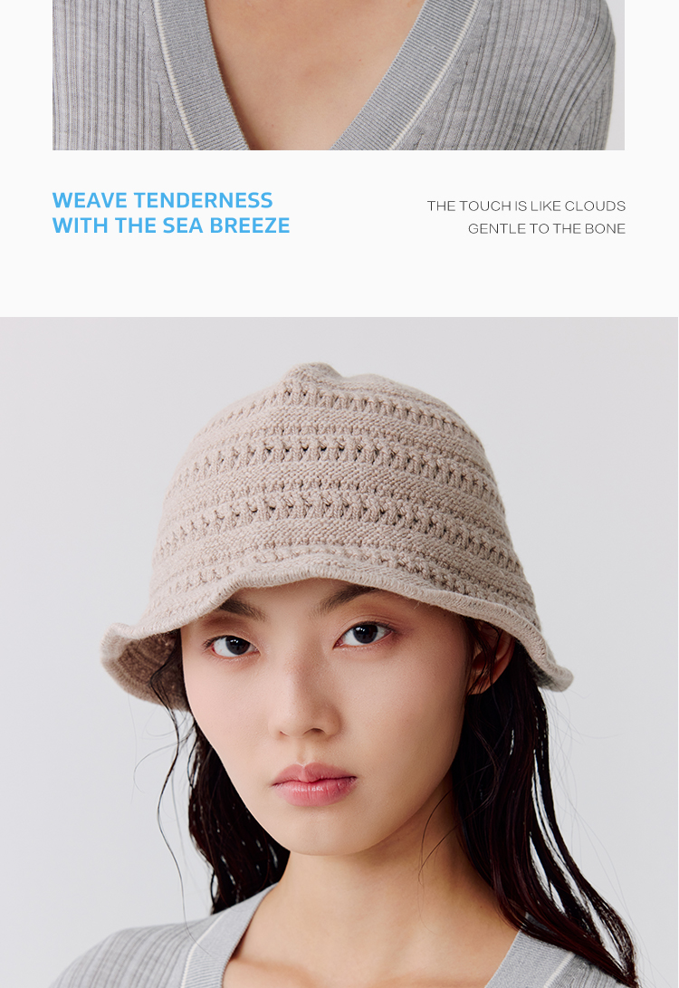 东黎 • 温柔的海风 桑蚕丝山羊绒 女士镂空条纹帽子 5320