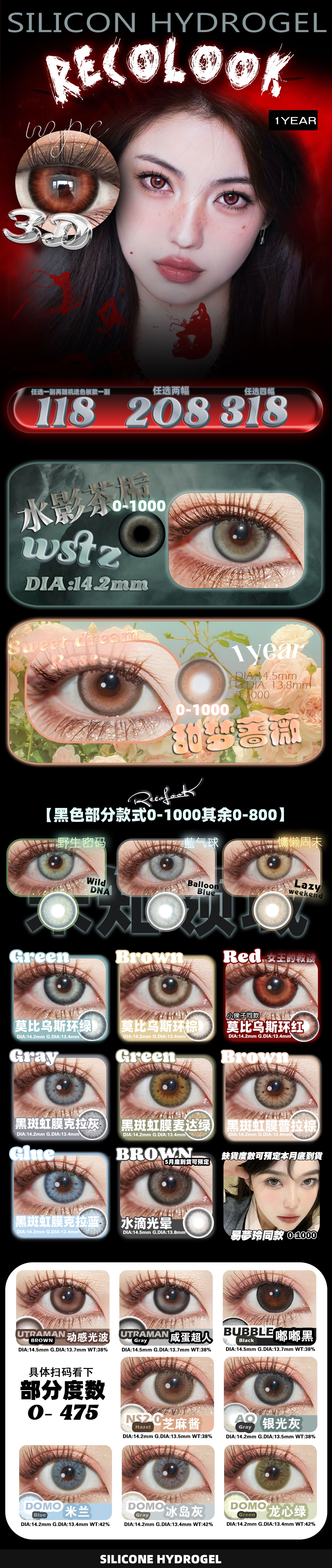 【年抛】Recolook 水影茶栀 甜梦蔷薇 野生密码 蓝气球