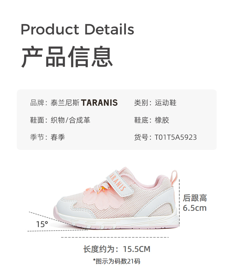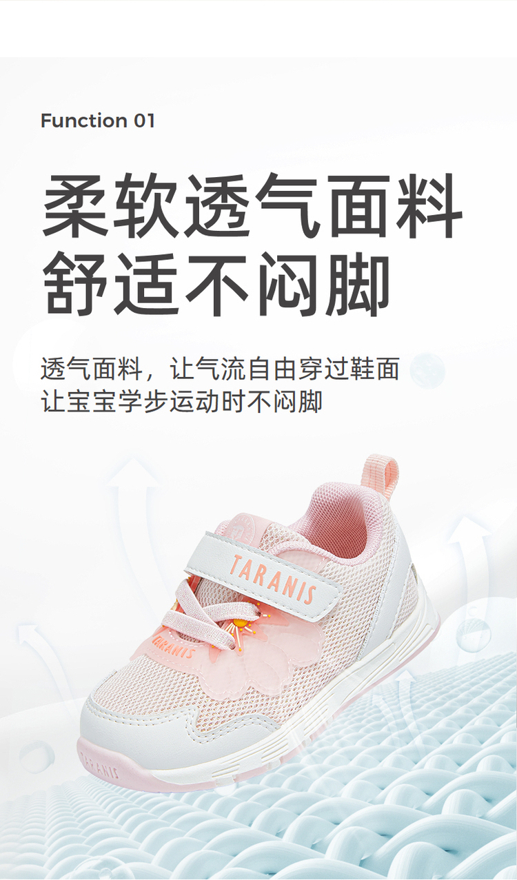 泰兰尼斯春款婴童段舒适网布透气女童学步鞋T01T5A5923