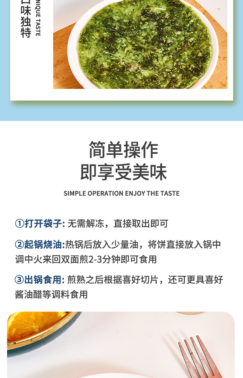 1、无需解冻,热锅,加少许油(也可用水代替油),煎至两面金黄即可,时长2-3分钟,外酥里嫩;