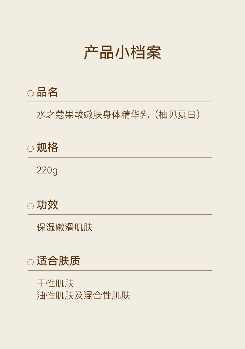 【任2件99元】【会员福利】水之蔻果酸身体乳嫩肤提亮肤色改善鸡皮220g