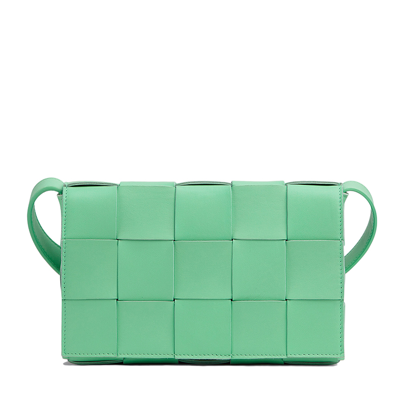 【包税】Bottega Veneta/葆蝶家 22春夏新款CASSETTE系列 女士泉水绿色小羊皮双面正交编织单肩斜挎豆腐包578004VMAY13801