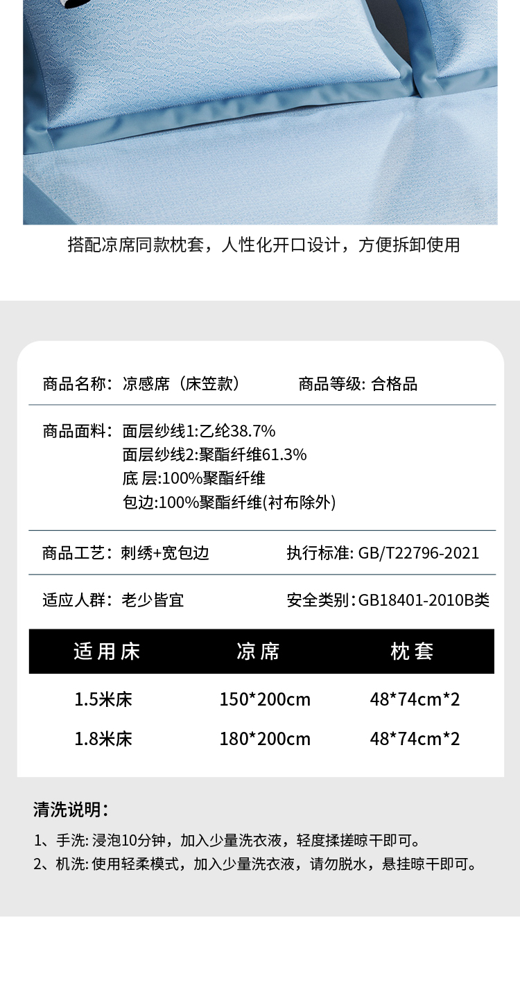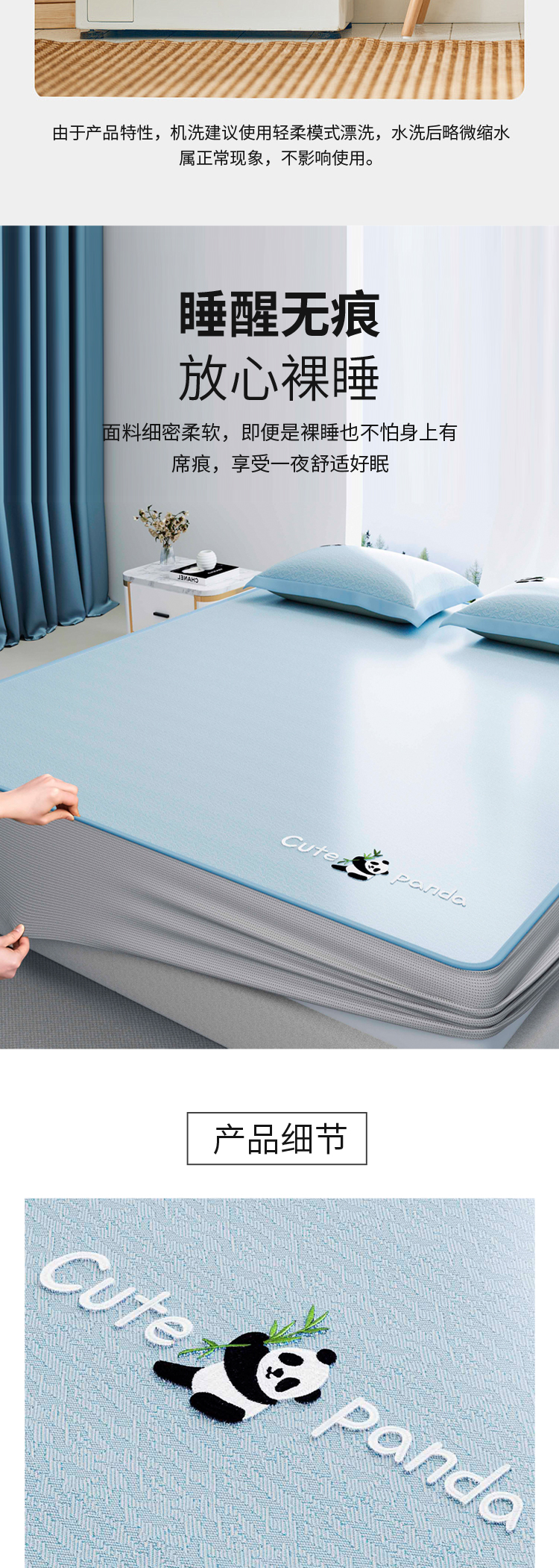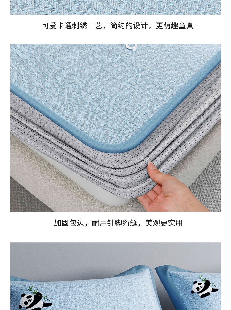 【品牌直发】加倍生活 卡通刺绣凉感席三件套 自然凉感 柔软细腻 可机洗 条席款/床笠款
