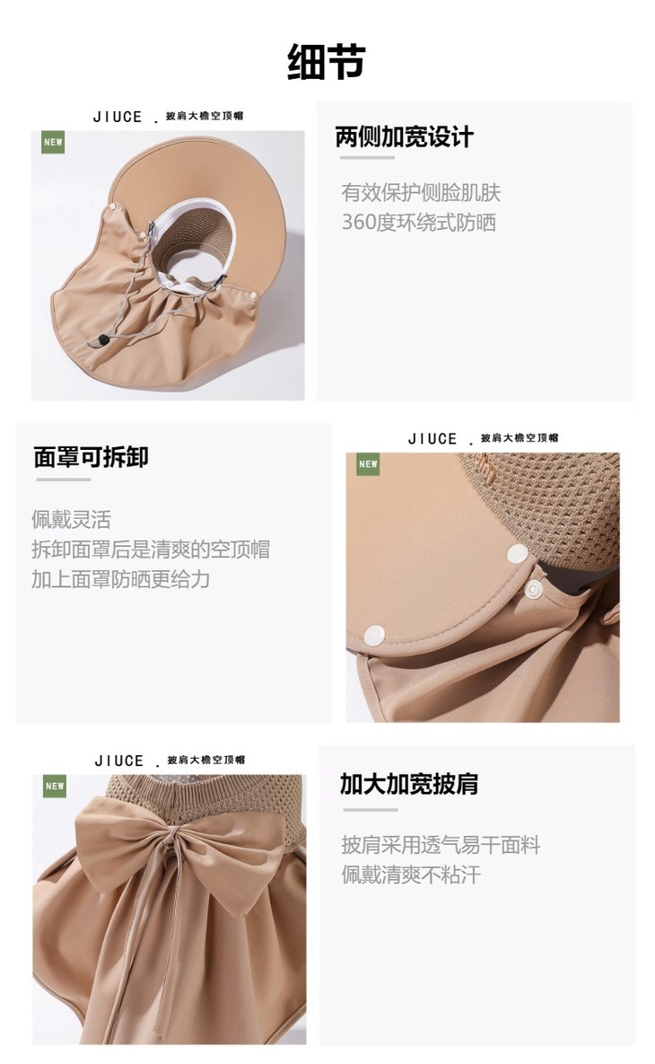 披肩防晒帽夏季户外防紫外线空顶遮脸太阳帽JC2854