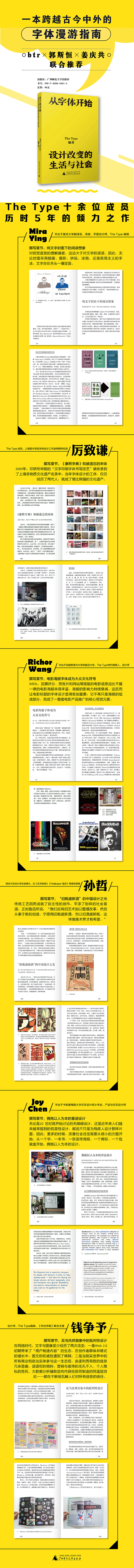 本书从日常生活入手,由浅入深地对字体这一概念逐步剖析,并向读者推广字体、文字设计和视觉传达设计文化相关知识,旨在培养读者对字体和文字设计的鉴赏力,并展示了字体和社会、历史变迁的联系,以及其如何成为改善社会(不仅限于商业)的重要、积极的工具和手段。