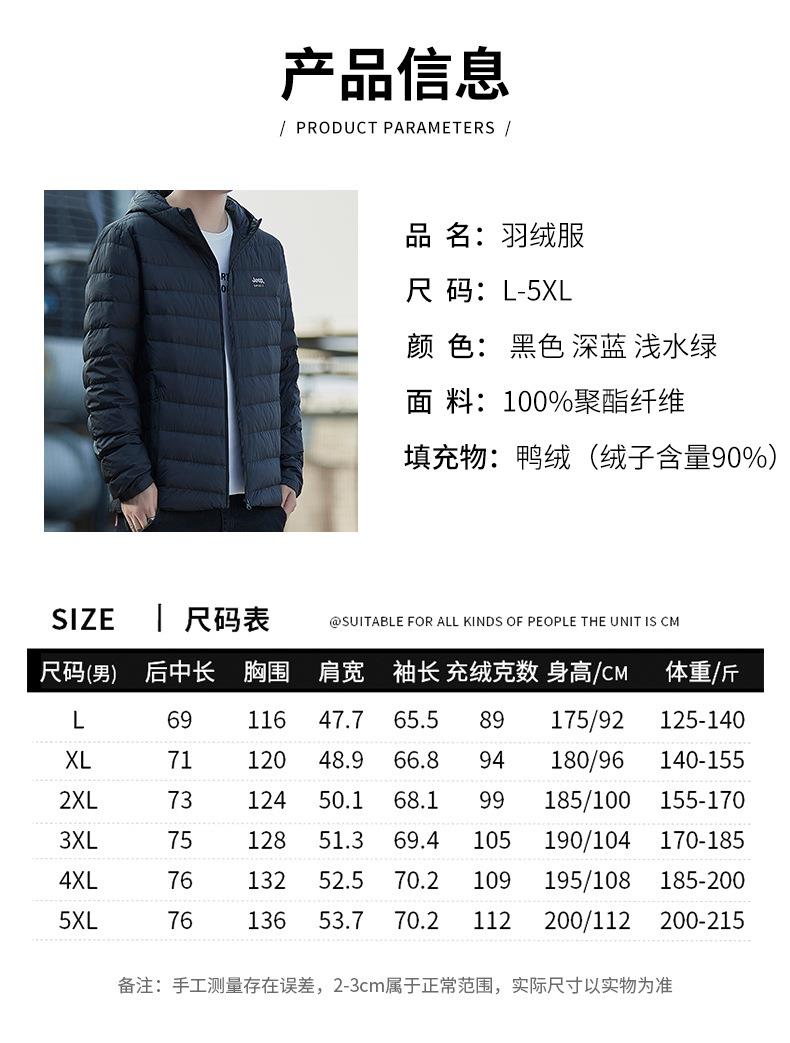JEEP SPIRIT新国标羽绒服男士连帽薄款轻便羽绒外套DJ7331