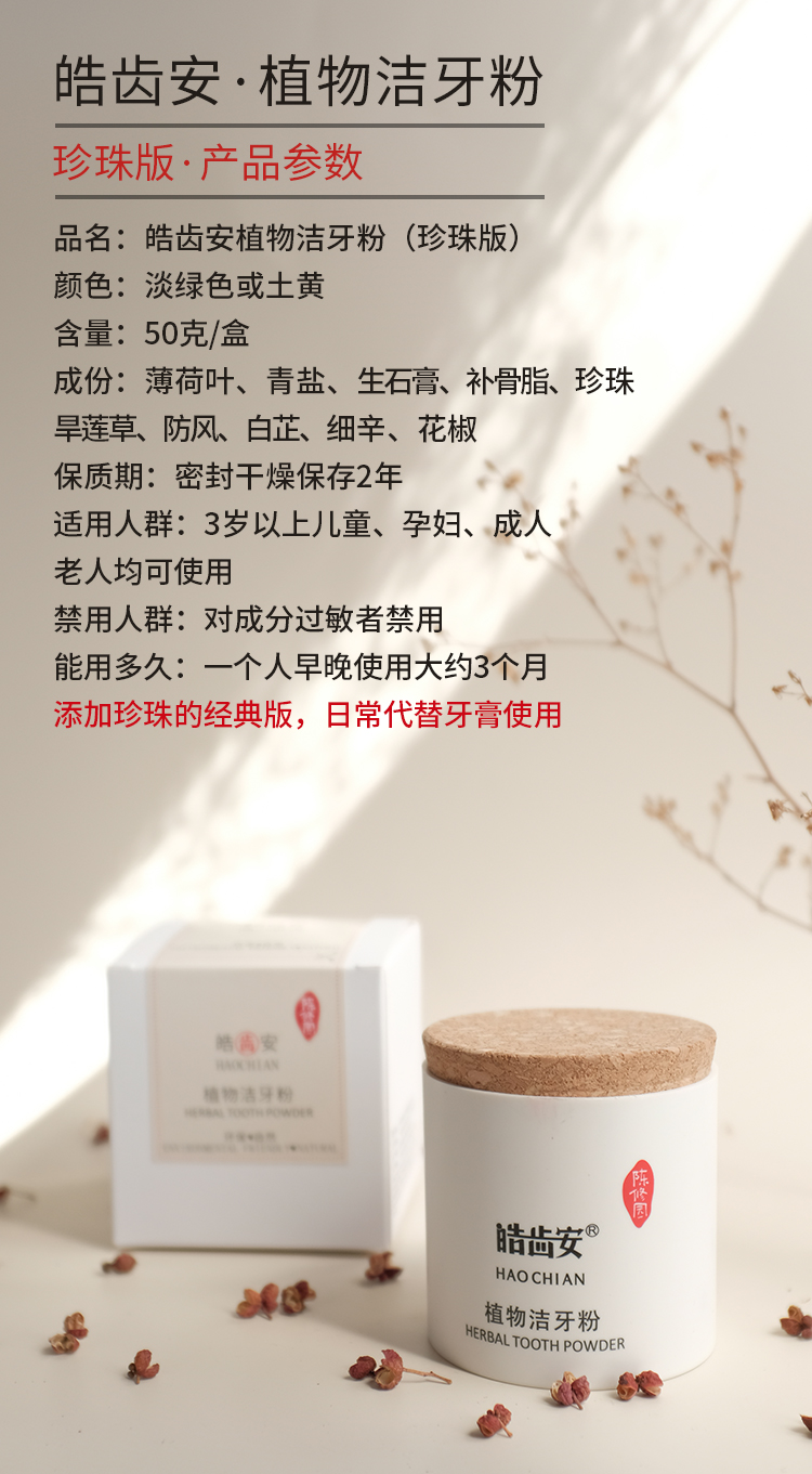 【陈修园·古方】皓齿安植物洁牙粉50克/瓶