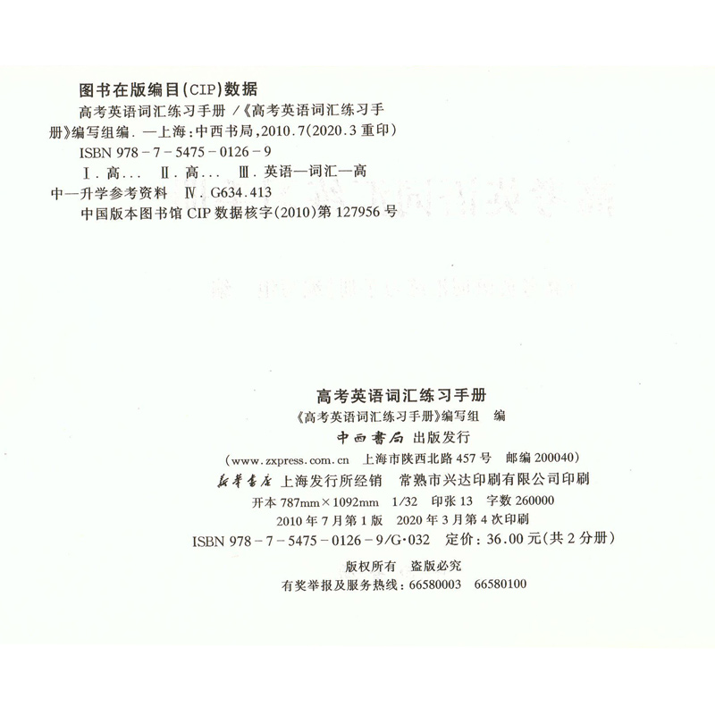 2021版 高考英语词汇练习手册参考答案 112-17 仅答案 高中英语词汇书 高一高二高三年级学生高考复习常备 中西书局