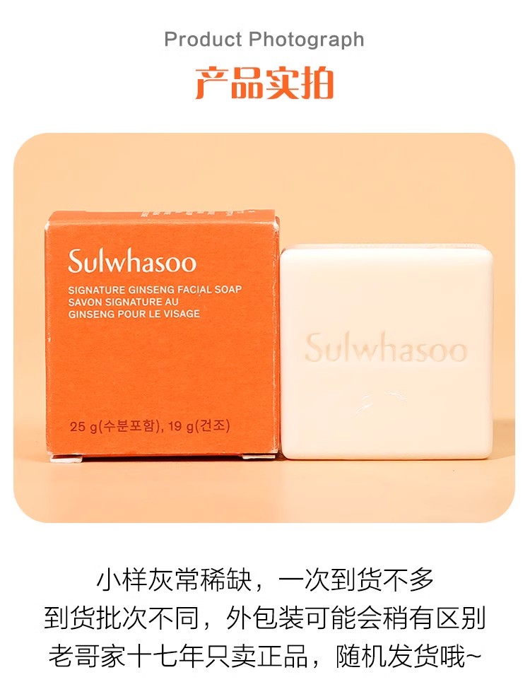 雪花秀人参洁肤皂25g小样洁面洗脸香皂控油清洁去角质新宫中蜜皂