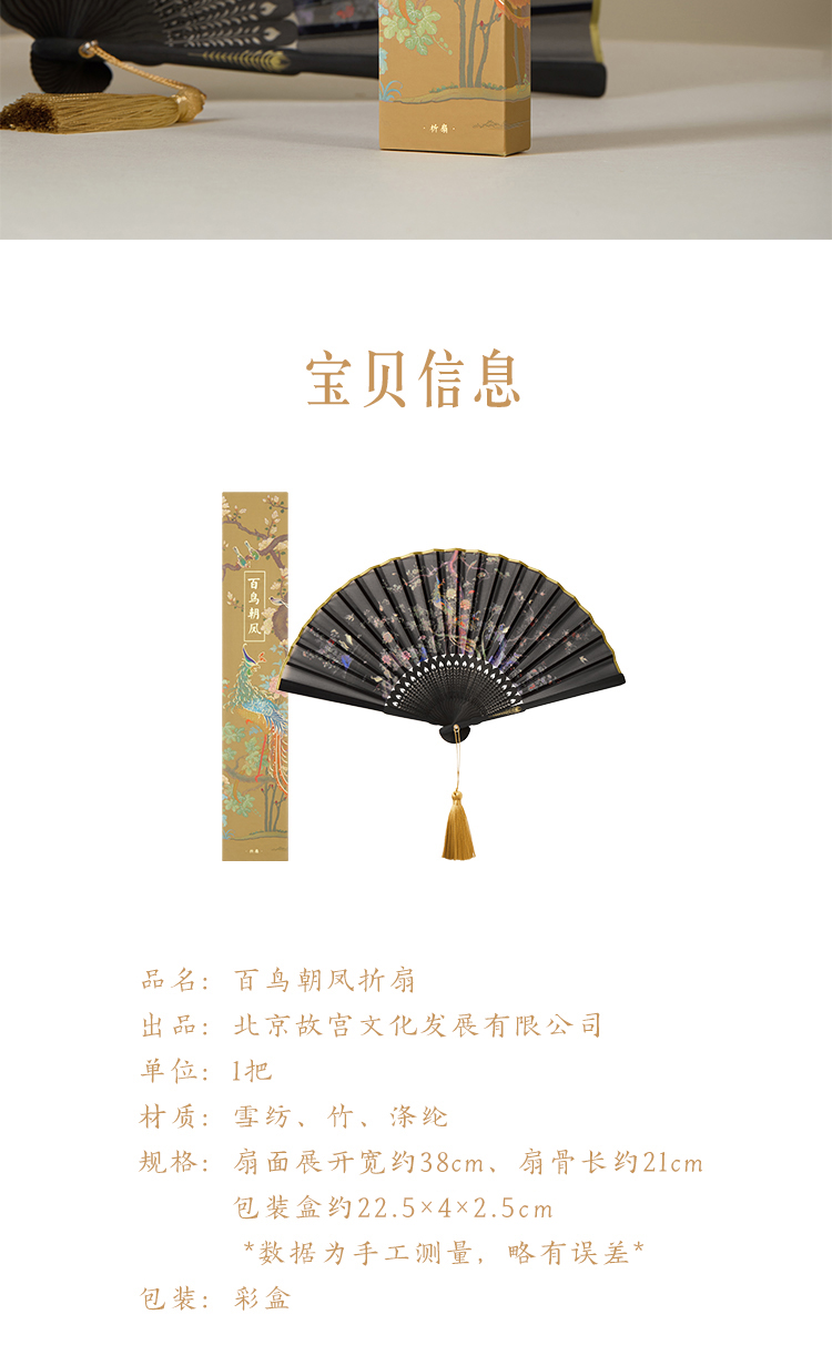 【故宫扇子】百鸟朝凤折扇中国风扇子便携中式折扇