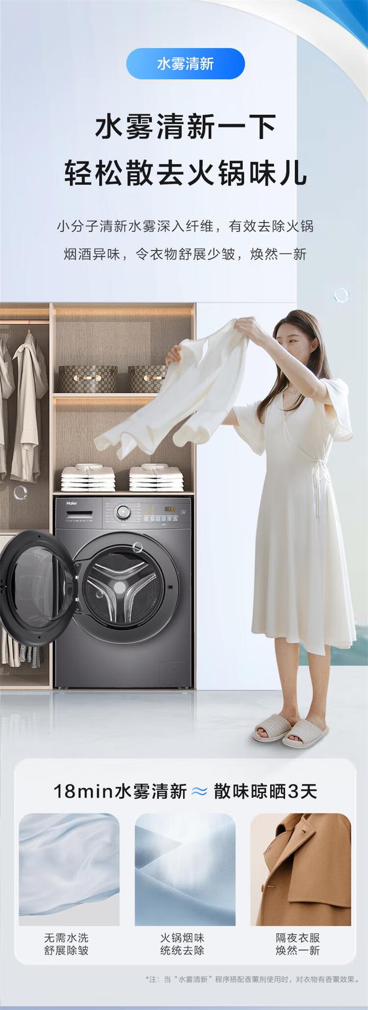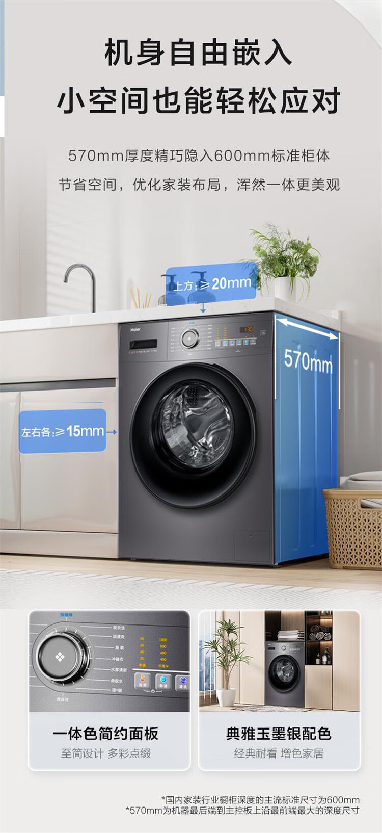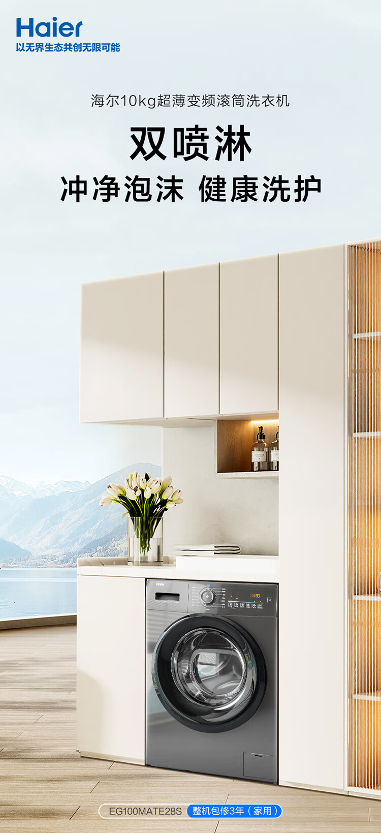 海尔(Haier)10公斤大容量 滚筒洗衣机 全自动单洗 3D内桶 多温度洗护超薄家用EG100MATE28S