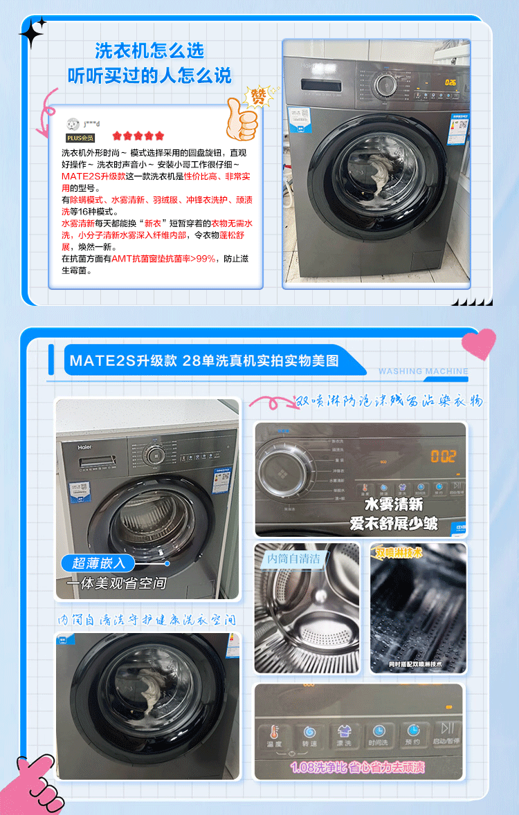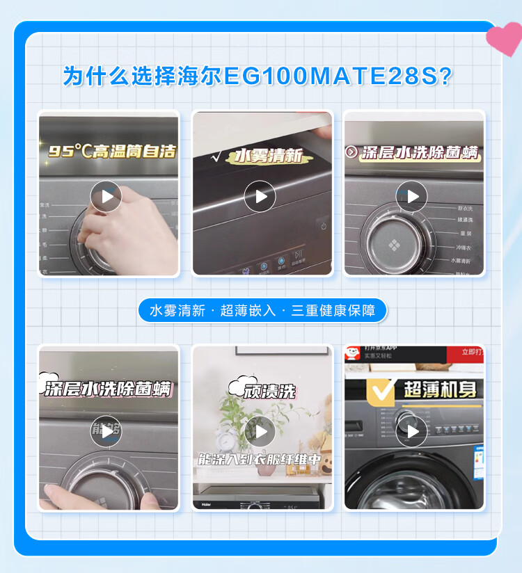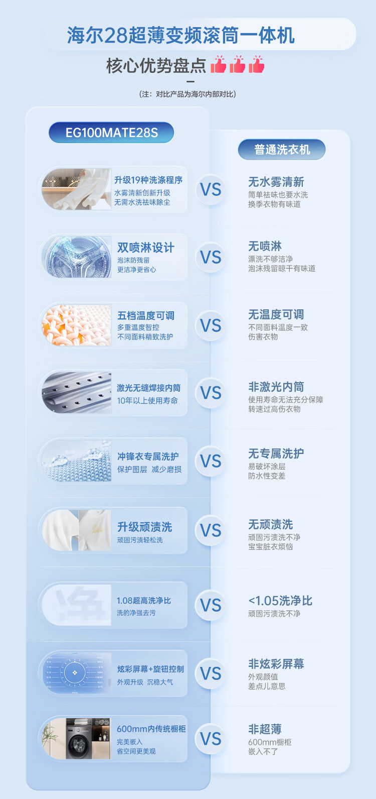 海尔(Haier)10公斤大容量 滚筒洗衣机 全自动单洗 3D内桶 多温度洗护超薄家用EG100MATE28S