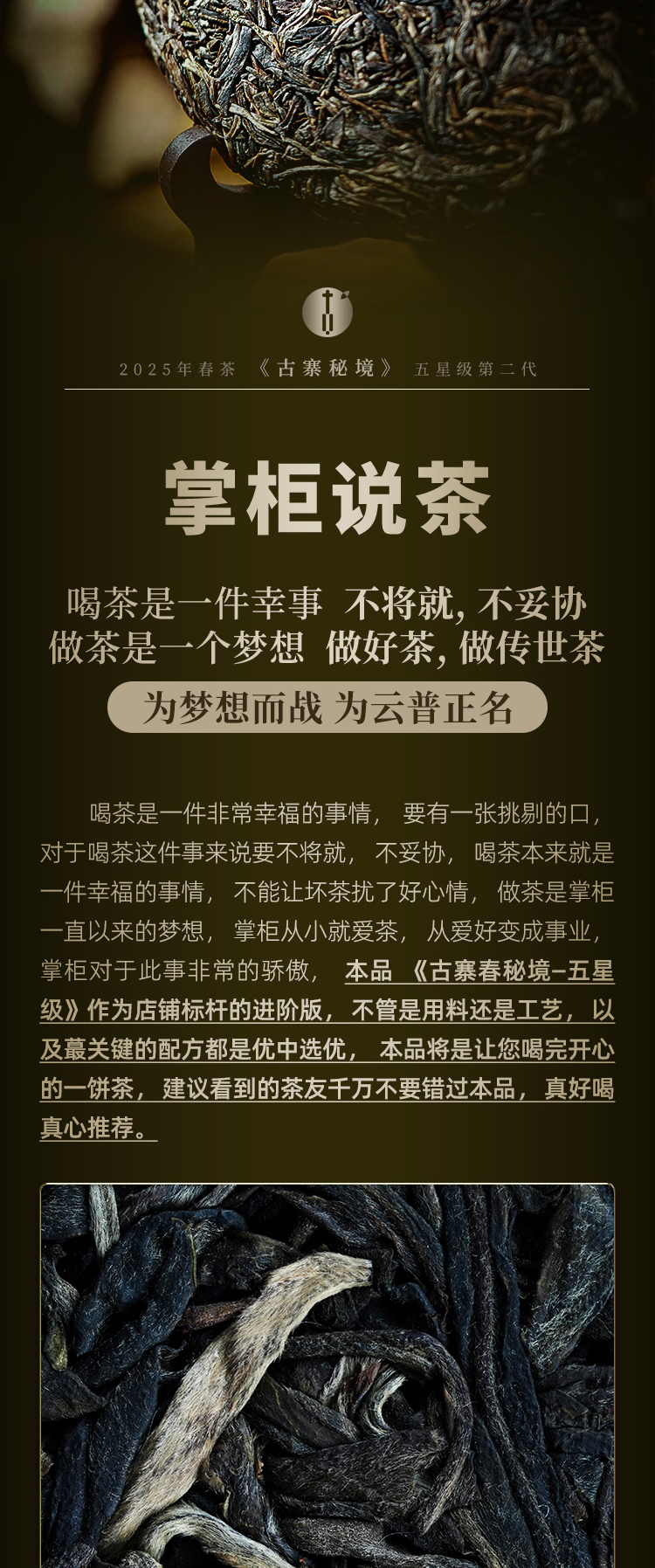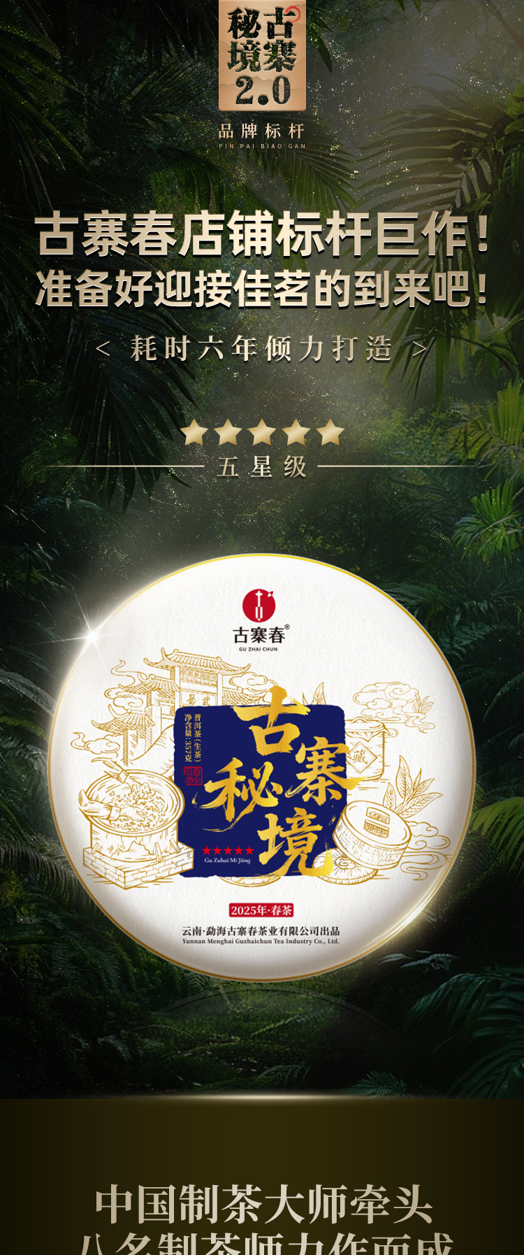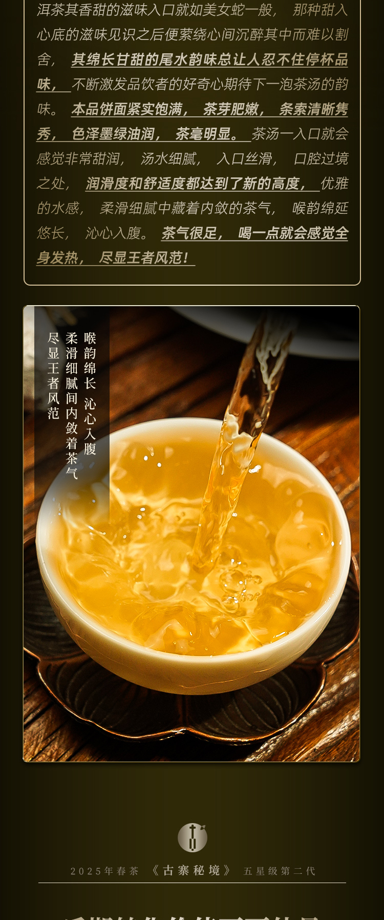 12月11日中午12点【古寨秘境五星级】2.0升级版重磅来袭2025年春茶店铺标杆巨作一杯茶知易武精髓,357克/饼
