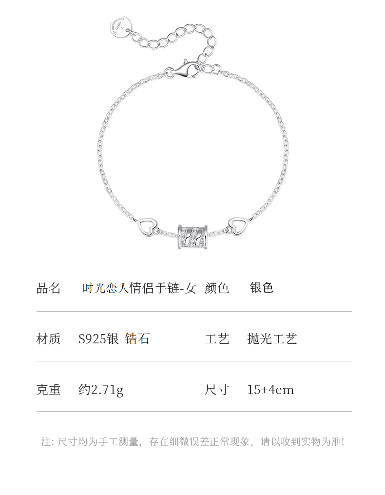 卡蒂罗/KADER 时光恋人情侣手链 925银经典小蛮腰路路通转运珠设计手饰 精致创意穿搭ins风配饰 520礼盒款
