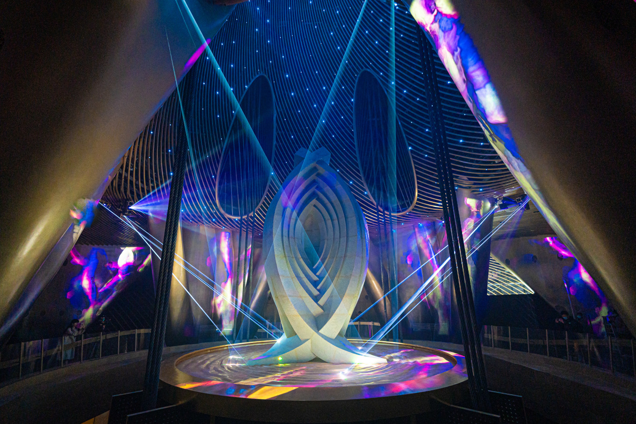 可继续搭乘专属电梯前往126层世界最高室内空间欣赏美轮美奂的天时艺术光影秀。