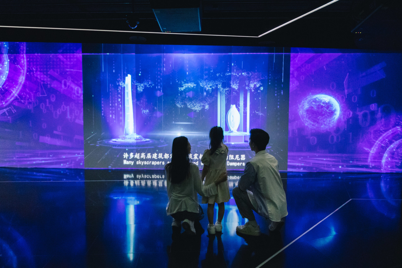 游客们可以在中国第一高楼感受绝无仅有的时空震撼!享受风与时光拨动心弦,沉浸式体验光影科技的趣味互动!