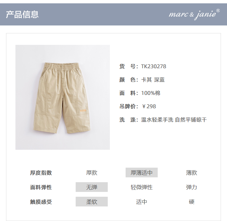 马克珍妮夏装新款 男童工装风裤子 儿童纯棉宽松八分裤230278
