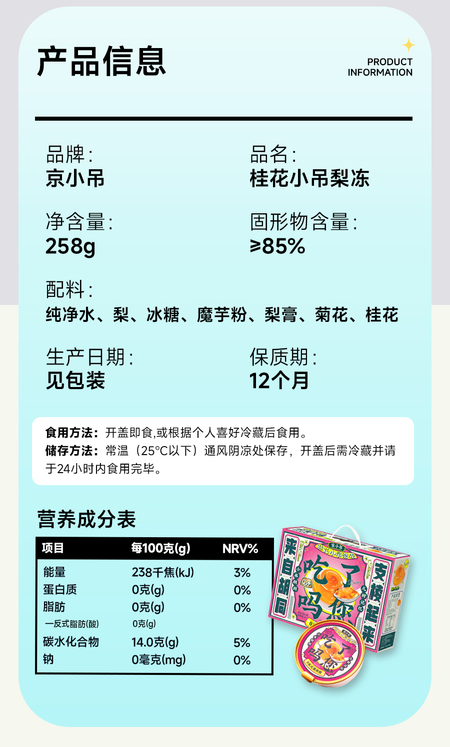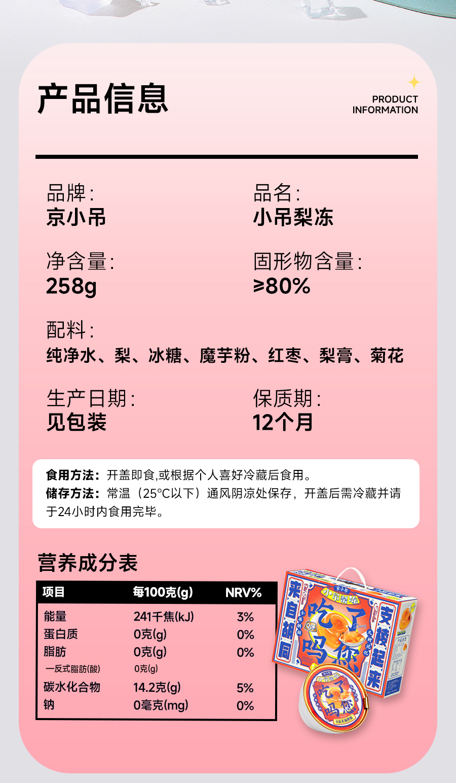 【老北京风味】京小吊梨冻 酥脆爽口 清甜多汁 0反式脂肪酸 0明胶 0柠檬黄 0日落黄 野餐可备 聚会分享 佐餐佳品 四季皆宜