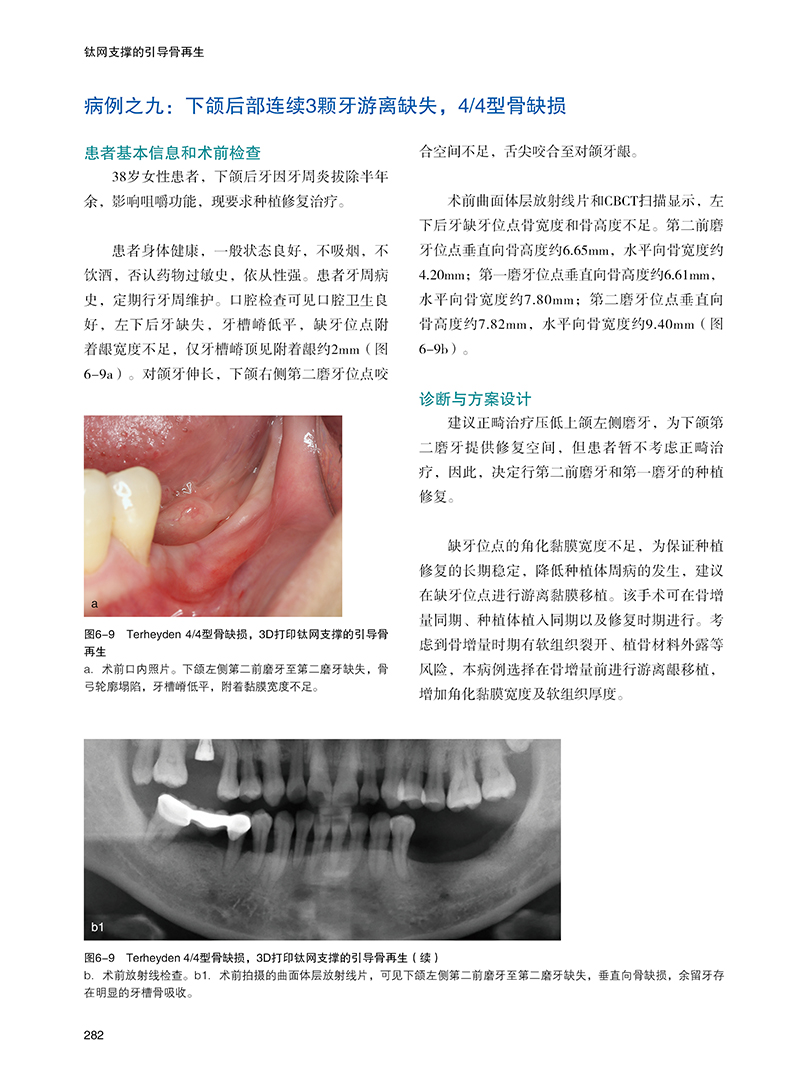 书中全面介绍了3D打印技术在口腔医学领域的应用,特别是在骨增量手术中的关键作用。内容涵盖了3D打印的基本原理、工艺流程、材料选择以及其在口腔医学中的实际应用案例。此外,本书还针对钛网支撑的引导骨再生(TMs-GBR)技术进行了深入探讨,包括其临床应用、手术程序以及可能出现的并发症等方面。通过丰富的临床病例分析,帮助读者更好地理解这一技术的优势和局限性,以及在实际操作中的注意事项。