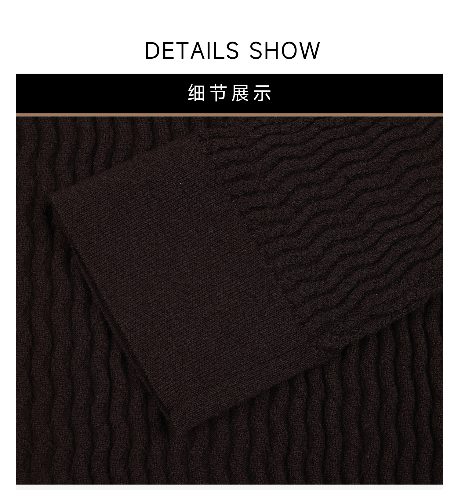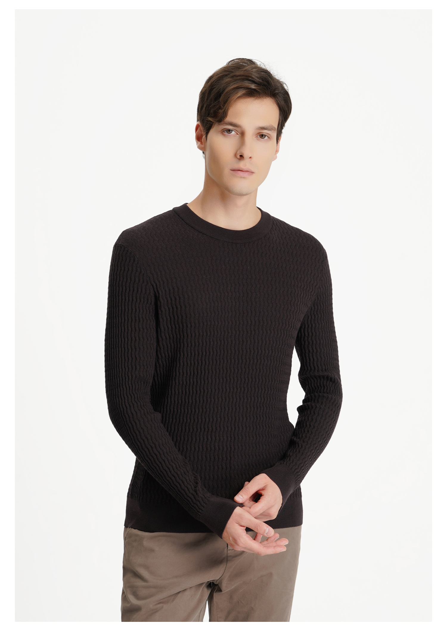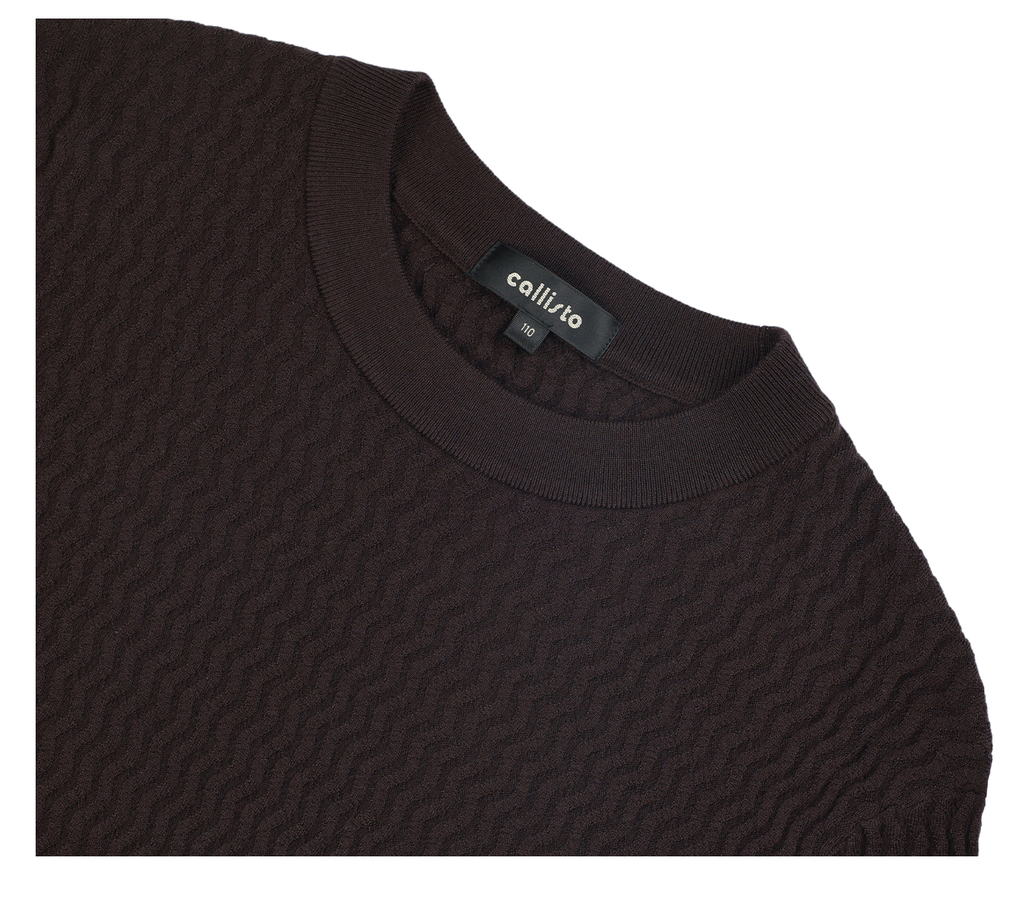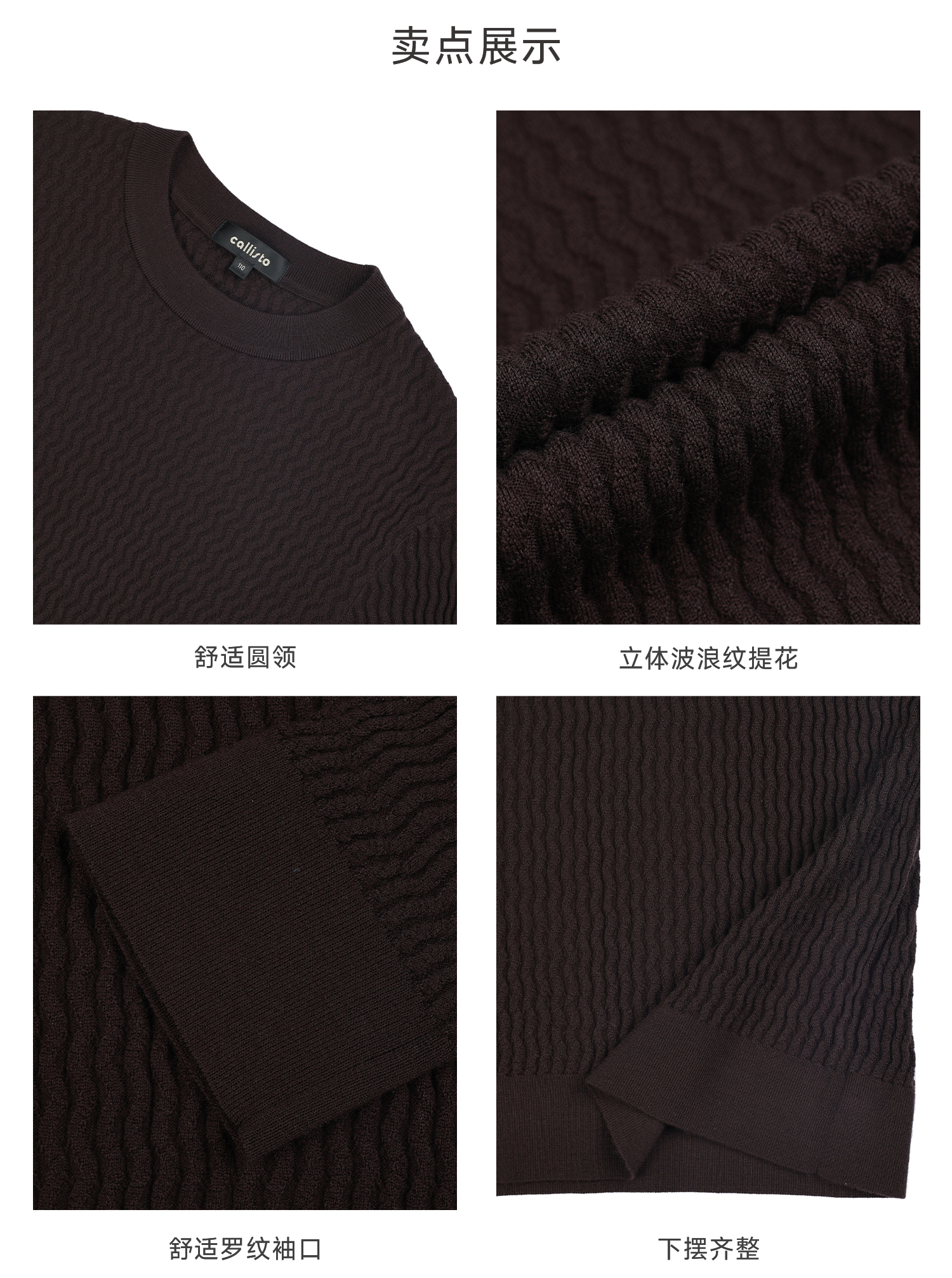 callisto咖色舒适圆领立体波浪纹提花毛衣