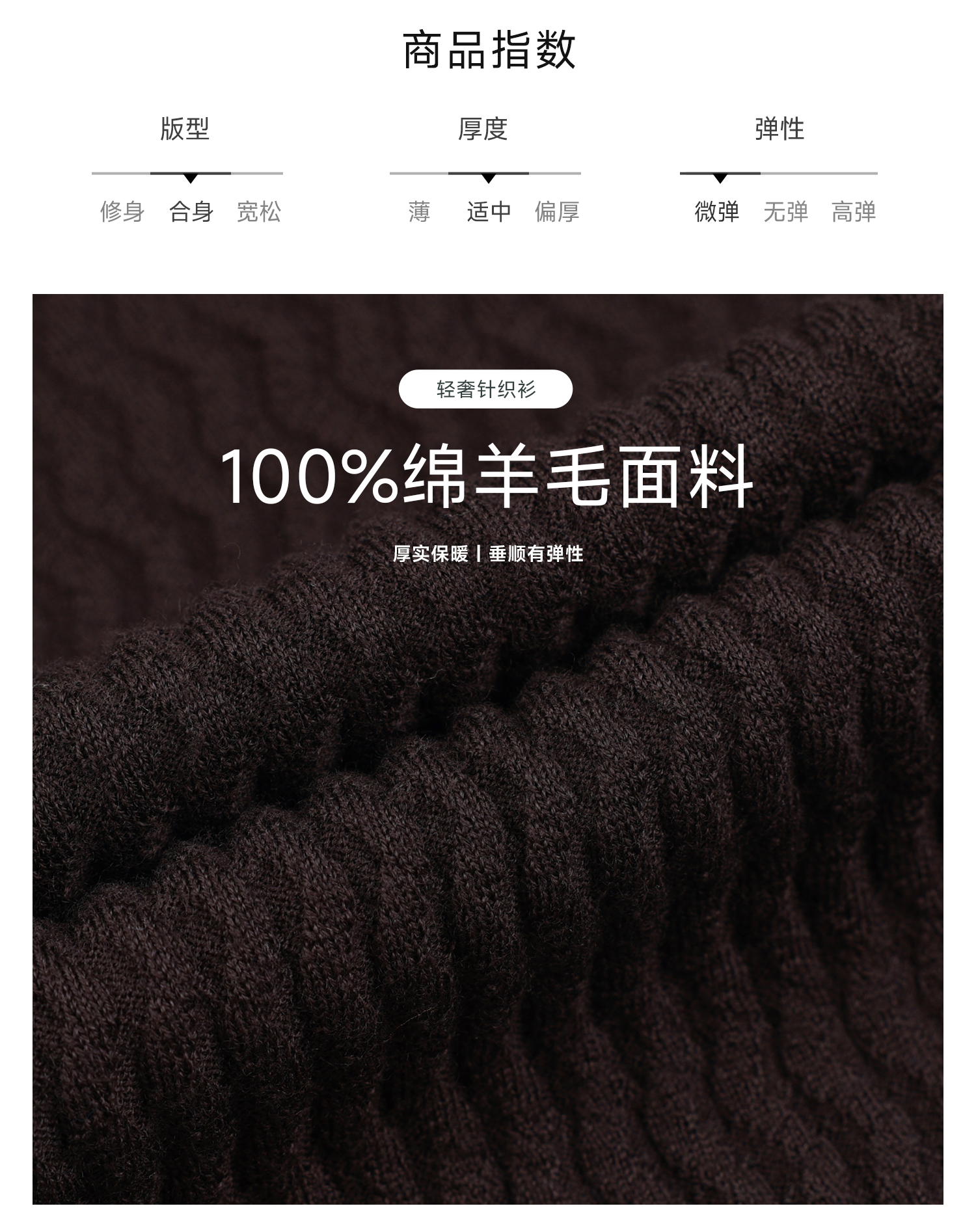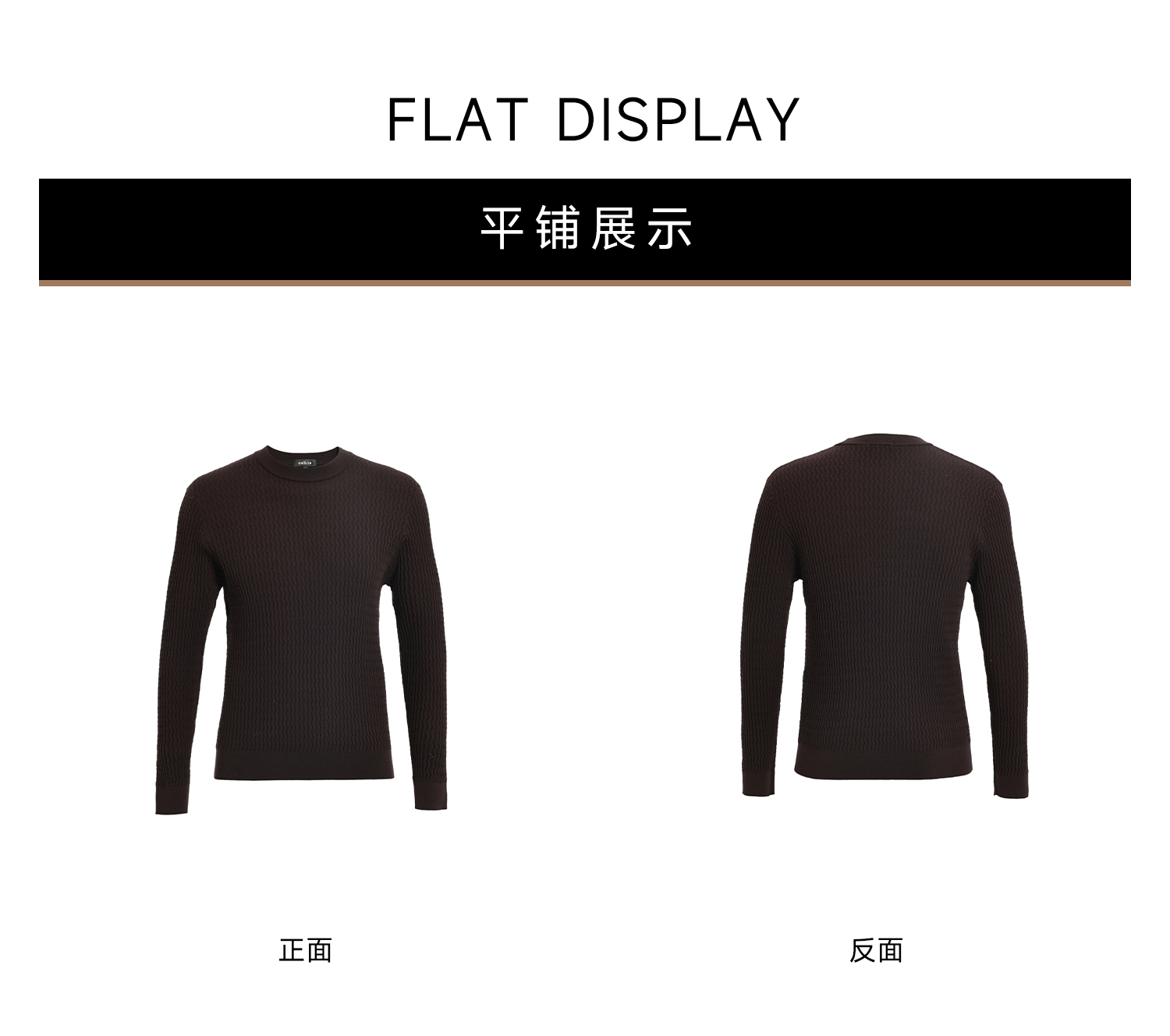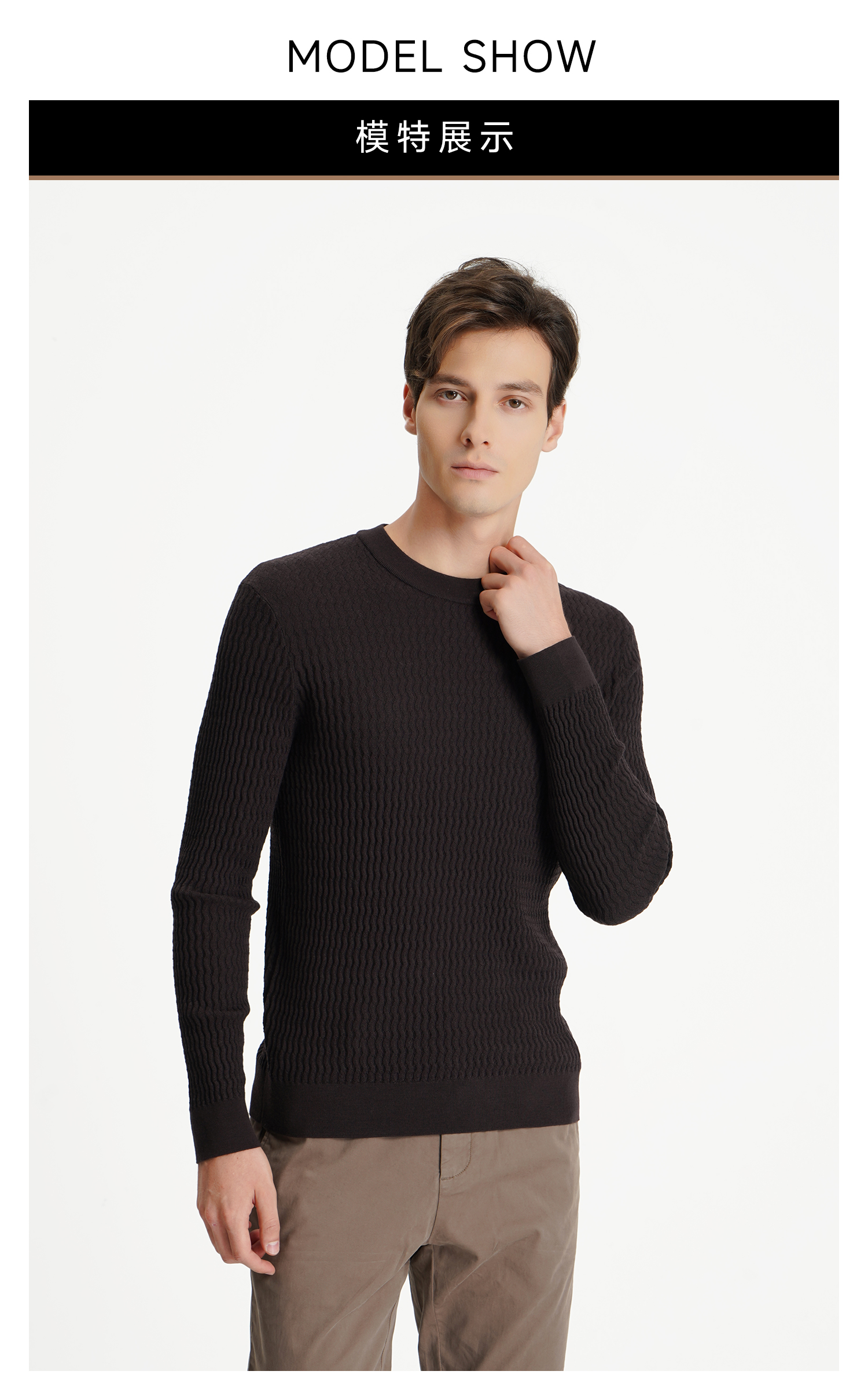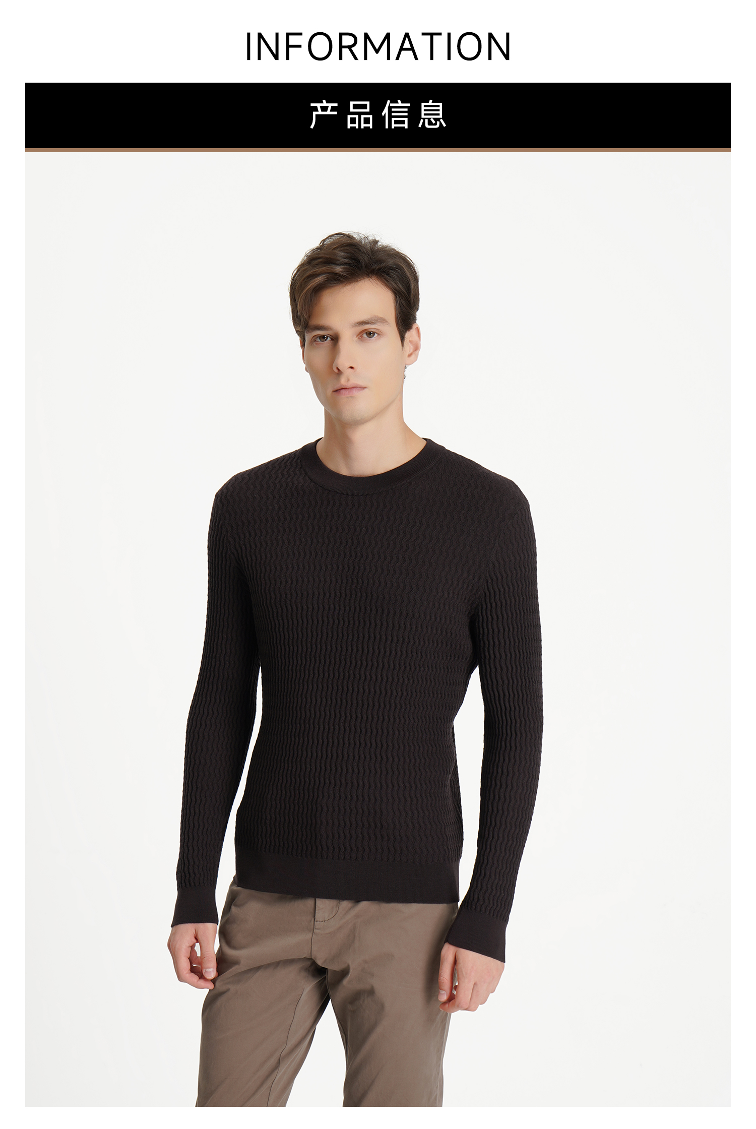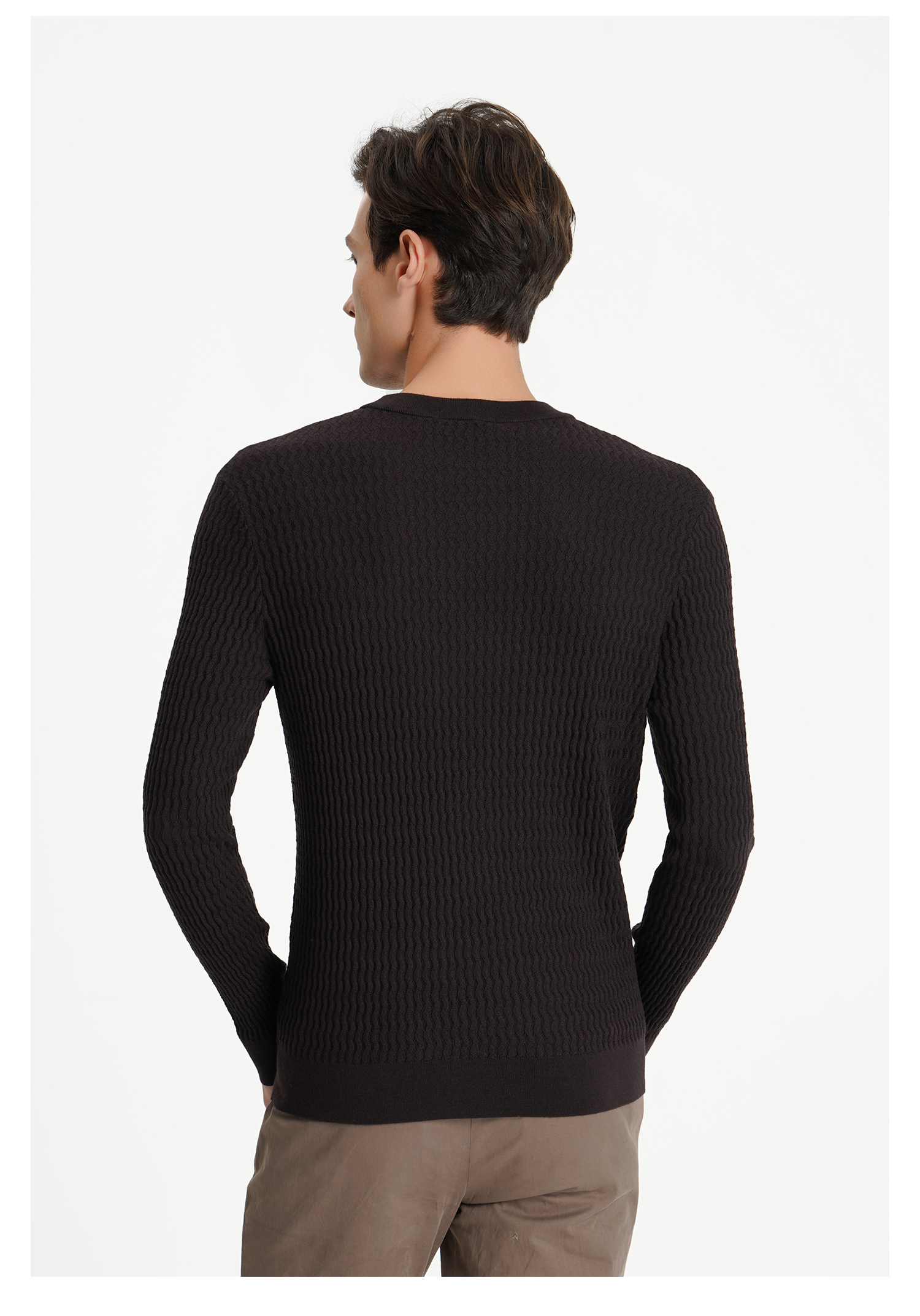 callisto咖色舒适圆领立体波浪纹提花毛衣