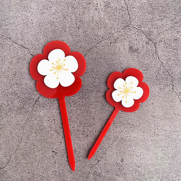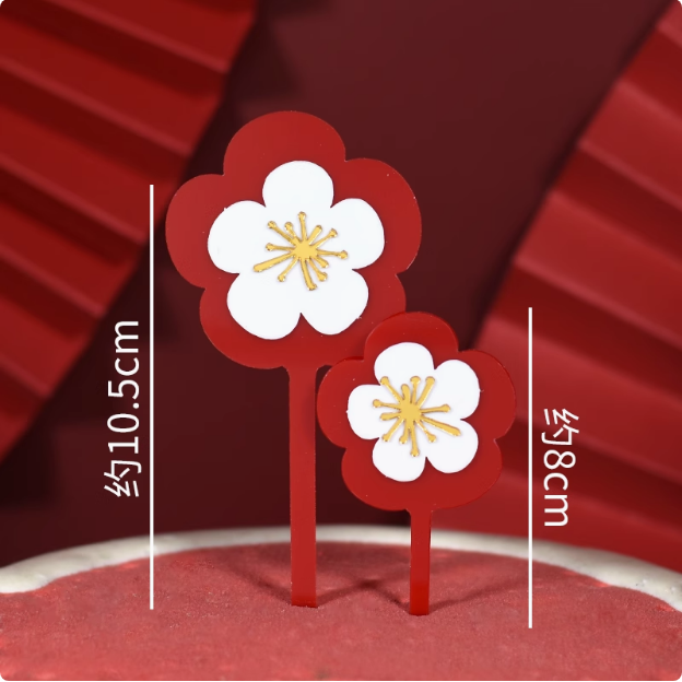 亚克力装饰套装 三层红梅花2支装 装饰插件祝寿组装花朵插件