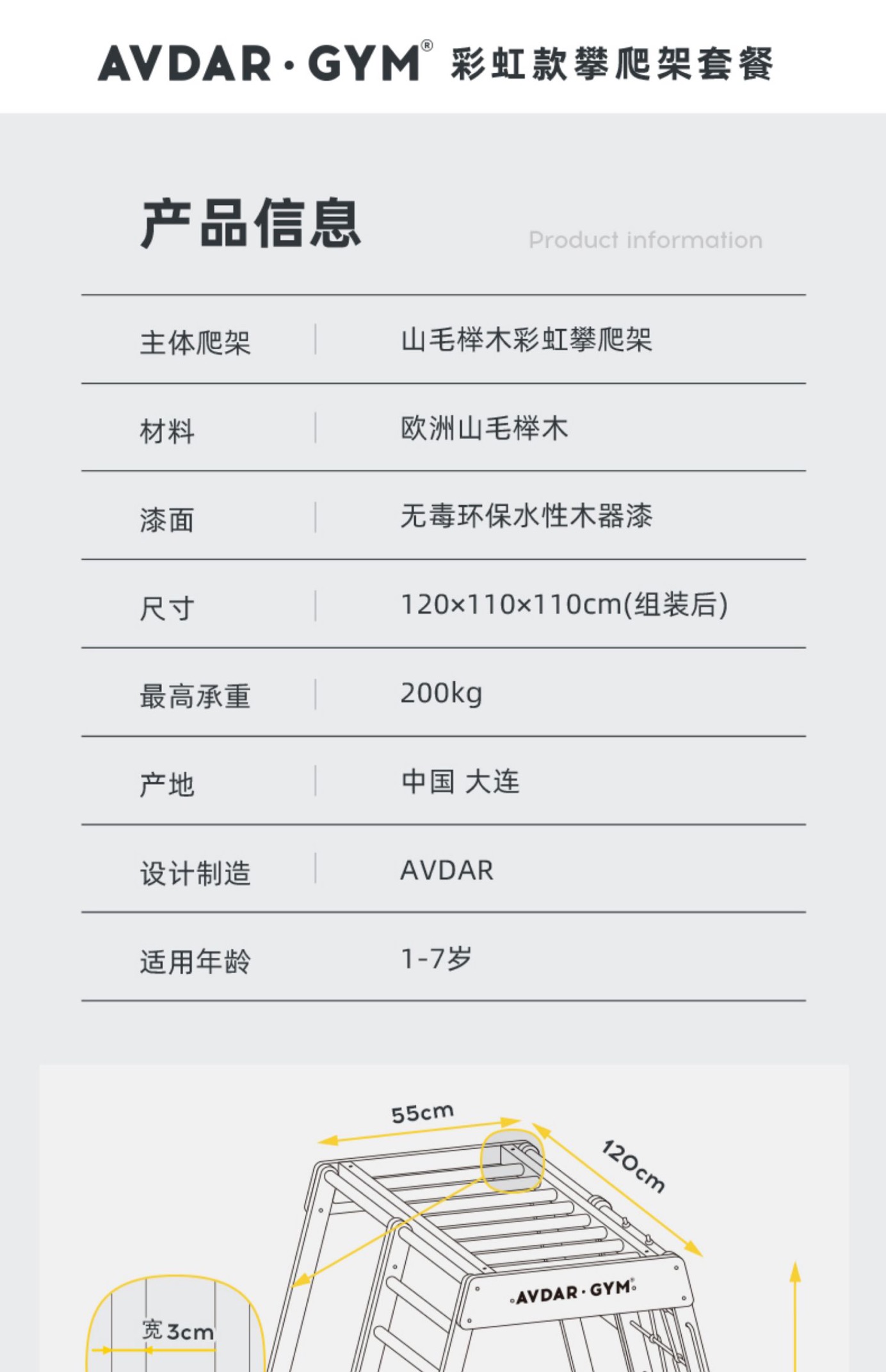 【品牌直供】AVDAR山毛榉木彩虹攀爬架