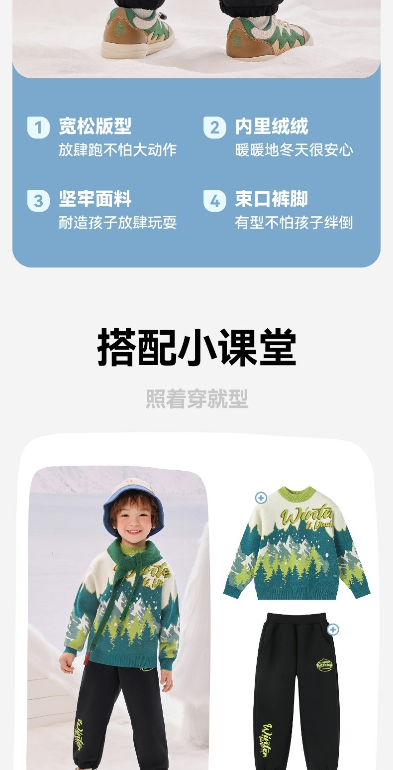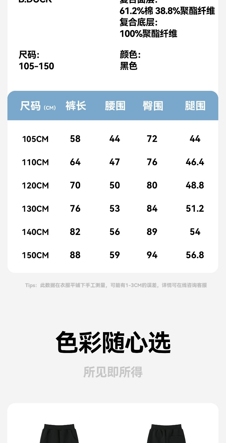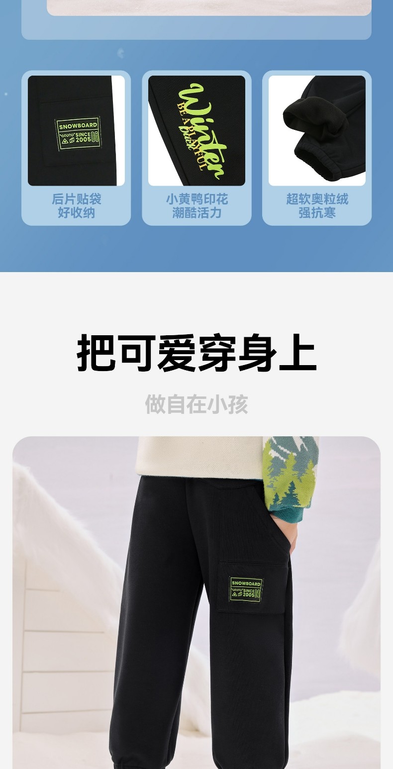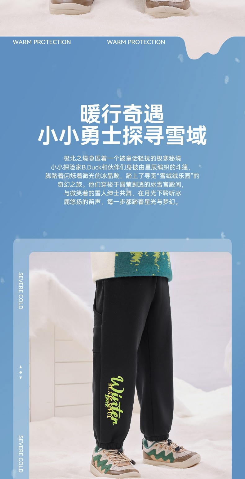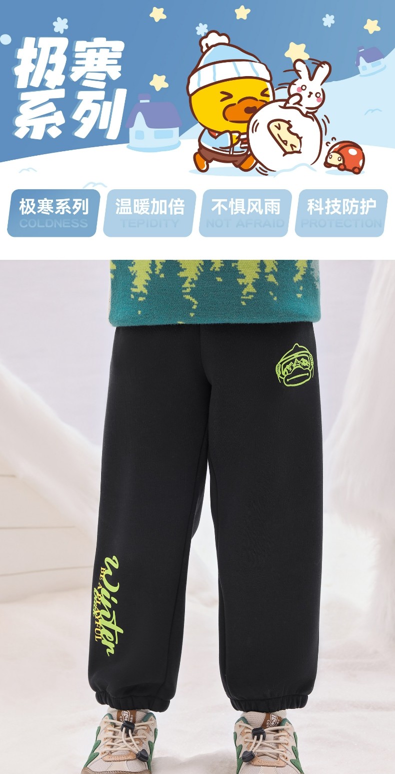 bduck小黄鸭童装男童加绒裤子儿童运动裤冬装保暖卫裤加厚潮105-150 BF5573091
